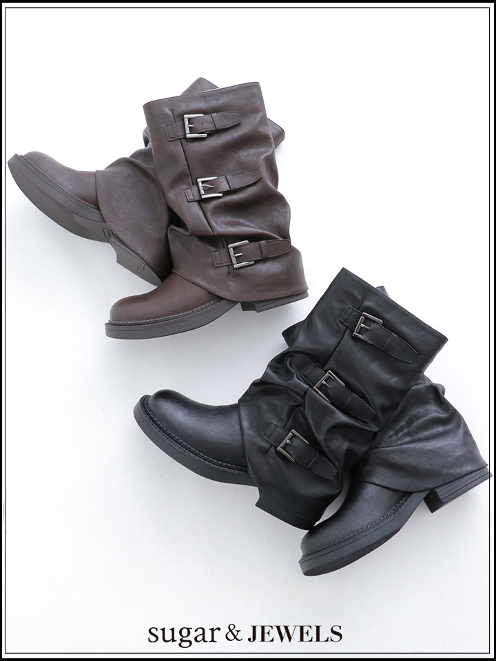 合皮ベルトショートブーツ【35-39サイズ/2カラー】[OF02] 【YN】 [S3500-251014-1]