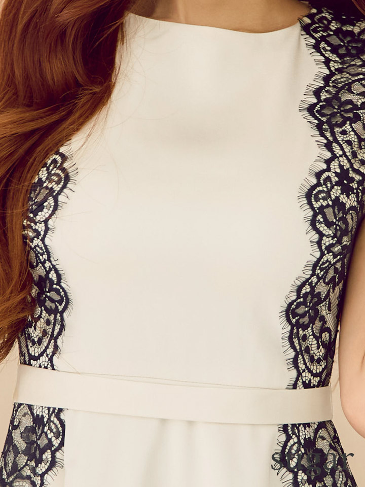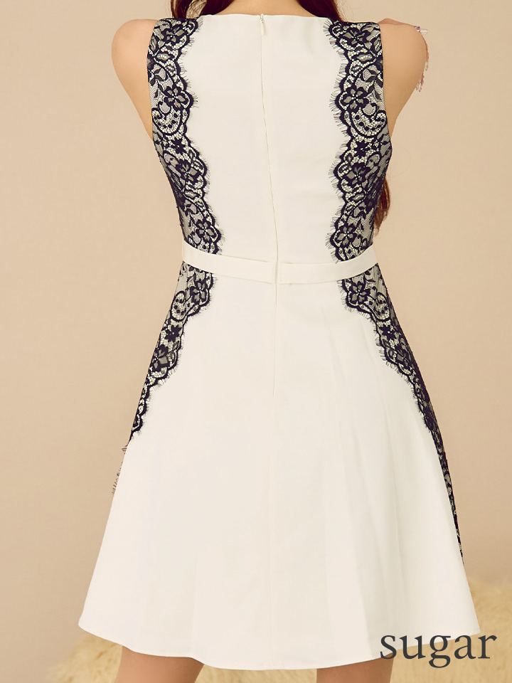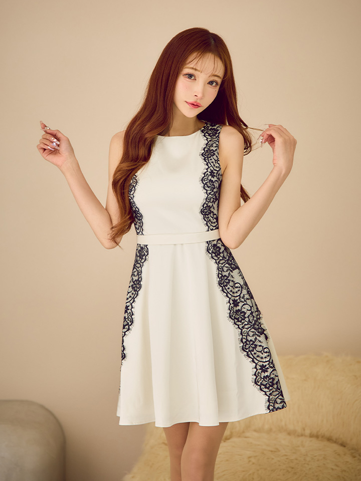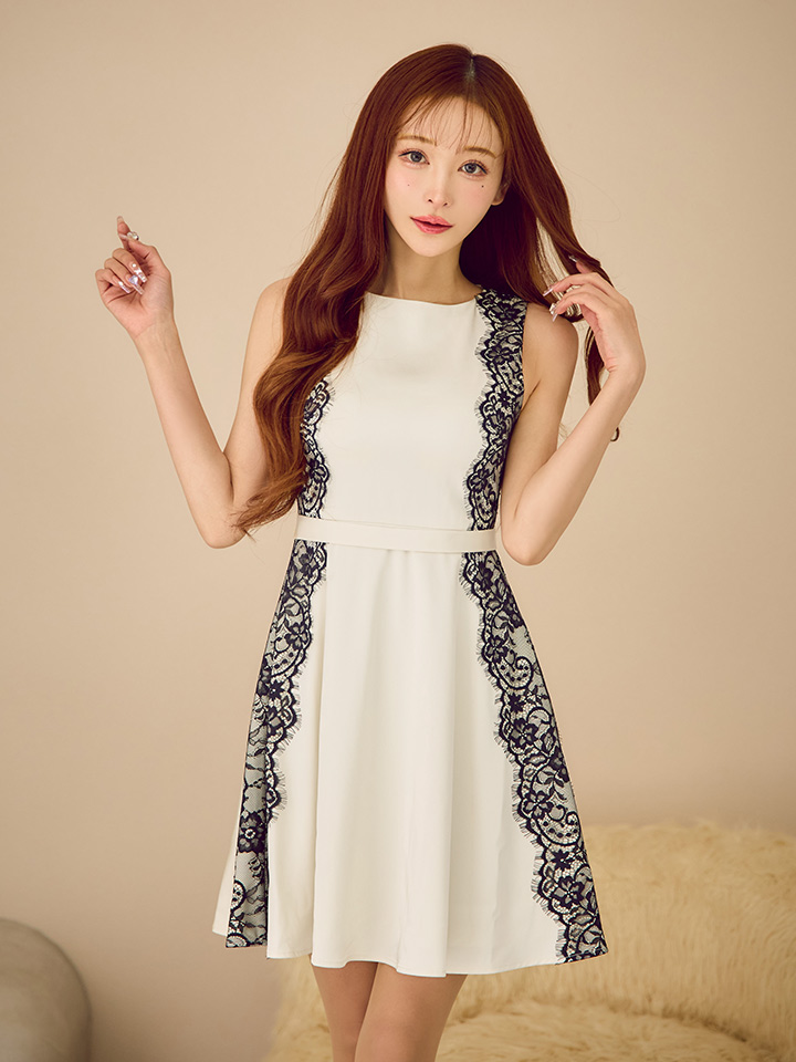 XS-Lサイズあり 【GINZA COUTURE/銀座クチュール】バイカラー/ ノースリーブ/ サイドレース/ Aライン/ フレア/ ワンピース/ ミディアムドレス/ キャバドレス[OF2] [LKC25164-IVxB-S2510]