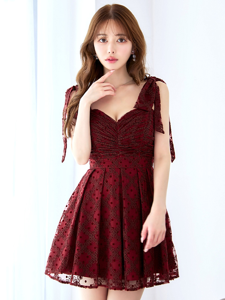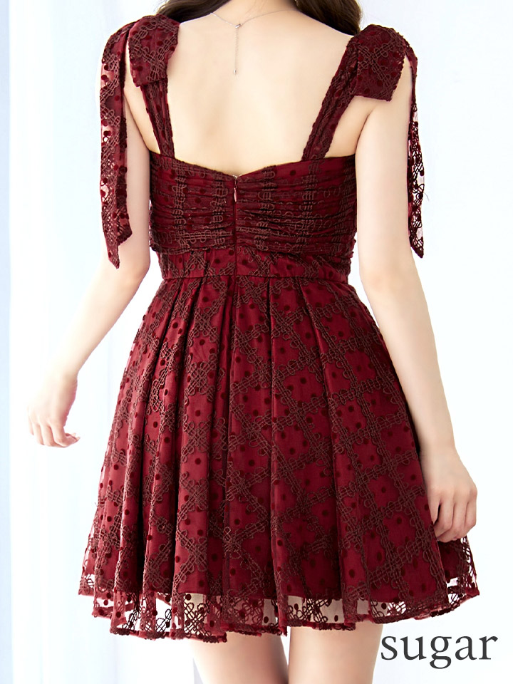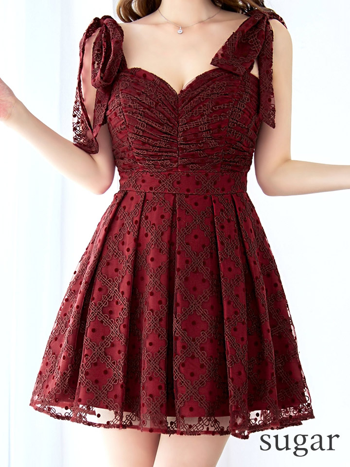 ボリュームのあるショルダーリボンがガーリーなフレアミニドレス♡