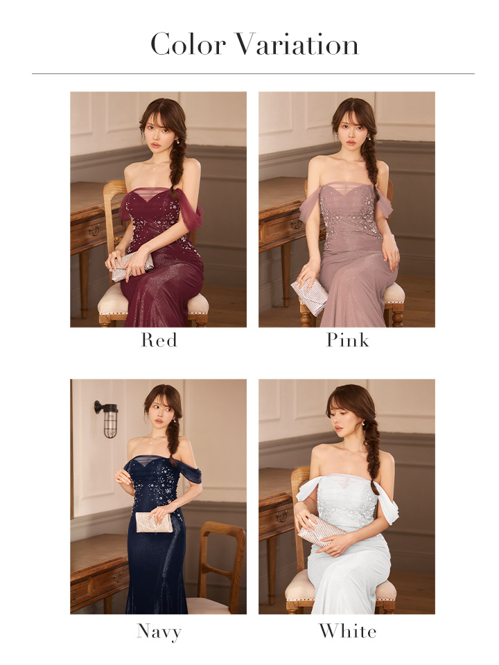 ボディラインを美しく魅せるマーメイドシルエットで素敵な夜にぴったり。