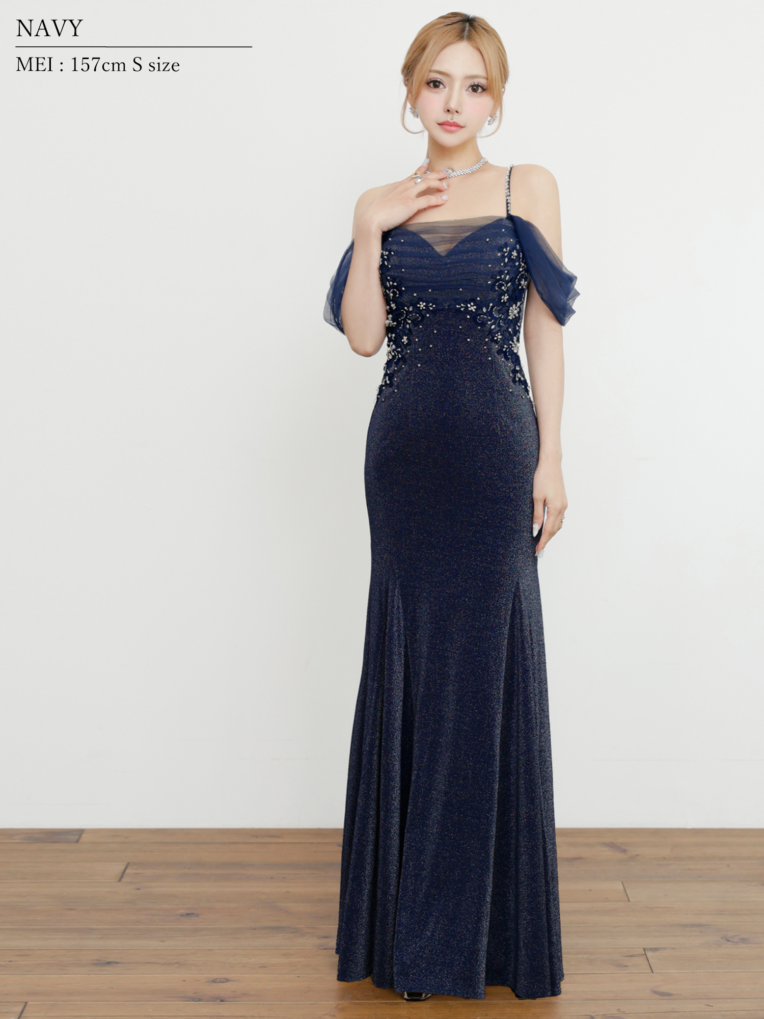 【予約商品/10月中旬-10月下旬発送予定】【ANGEL R/エンジェルアール】オフショルダー/ フラワー/ レース/ ビジュー/ ラメ/ タイト/ ロングドレス/ キャバドレス[OF2] [AR25863-NV-S251016]