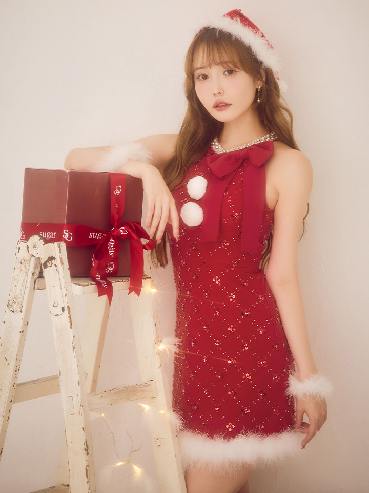 【予約 / 11月中旬発送予定】【送料無料!】【サンタ】サイドリボンツイードビジューサンタコスプレ【コスプレ5点セット】【XS-Lサイズ/2カラー】[OF03] [SS-201-SB-dzw-B-25RK]