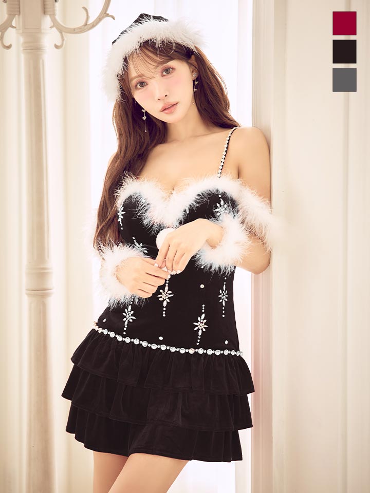 【ノベルティ】【予約 / 11月上旬発送予定】【送料無料!】【サンタ】 スノーフレークビジューフレアサンタコスプレ【コスプレ4点セット】【XS-Lサイズ/3カラー】[OF03] [SS-195-SB-dzw-GY-25MY]