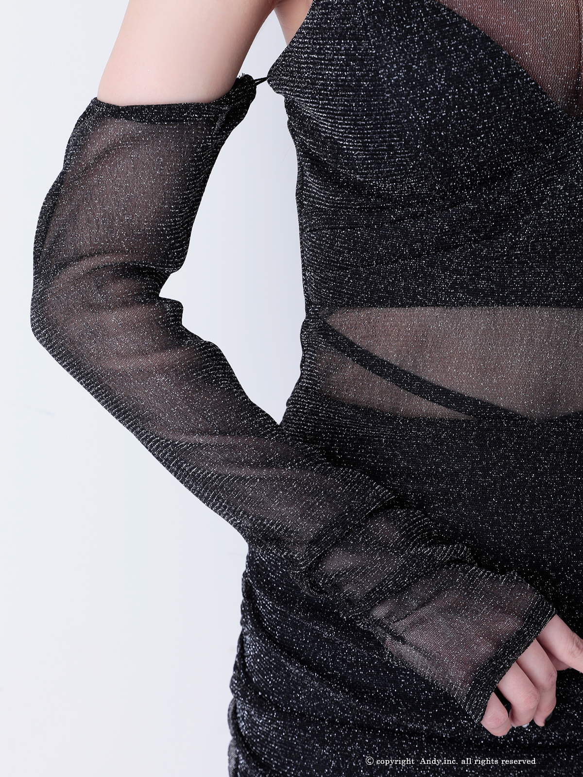 XSサイズあり【Andy GLAMOROUS/アンディグラマラス】ラメニット/ オフショル/ ロングスリーブ/ 袖あり/ カットアウト/ ウエストシアー/ タイト/ ミニドレス/ キャバドレス[OF05] [GMS-V894-P-2510]