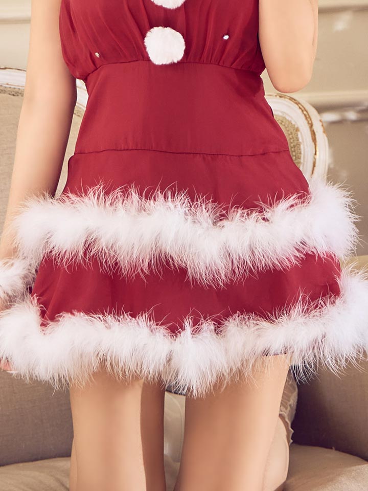 透け感×ふわもこファーでフェミニンに仕上げたサンタコスプレ。