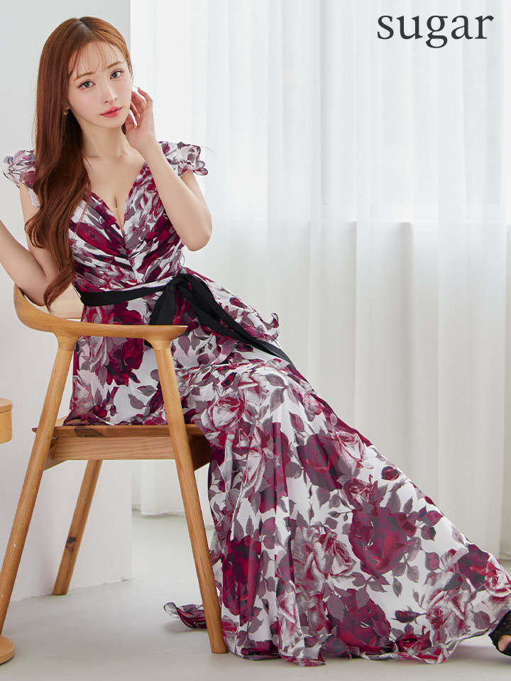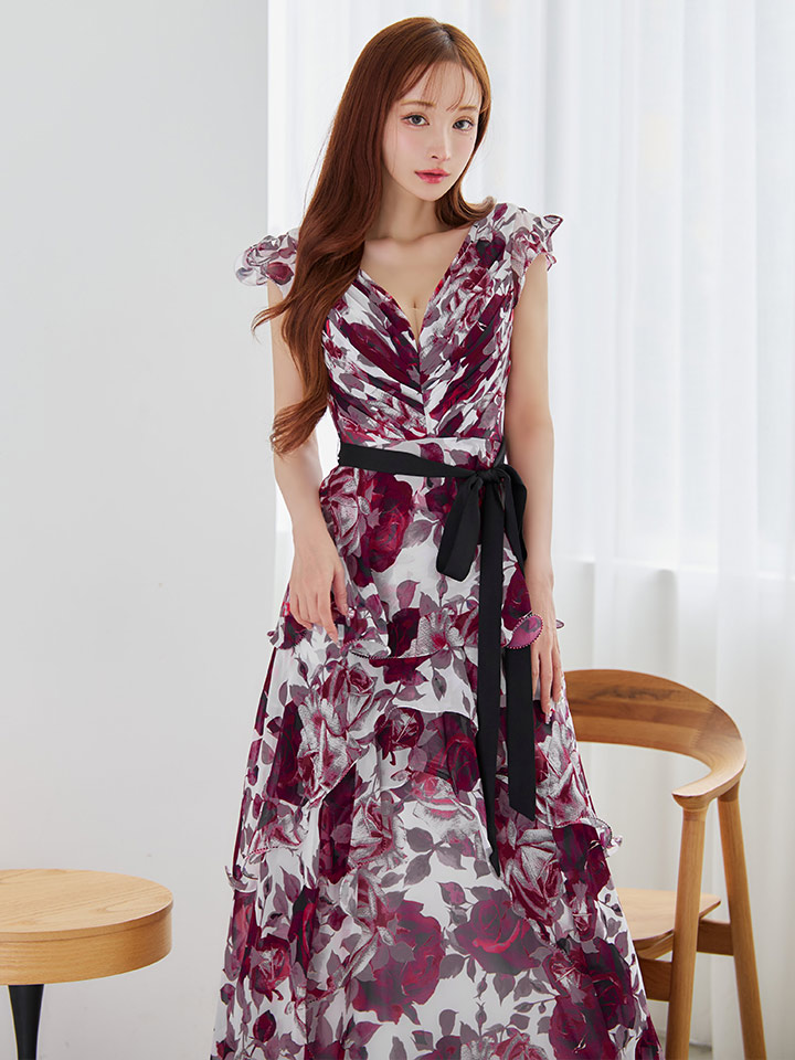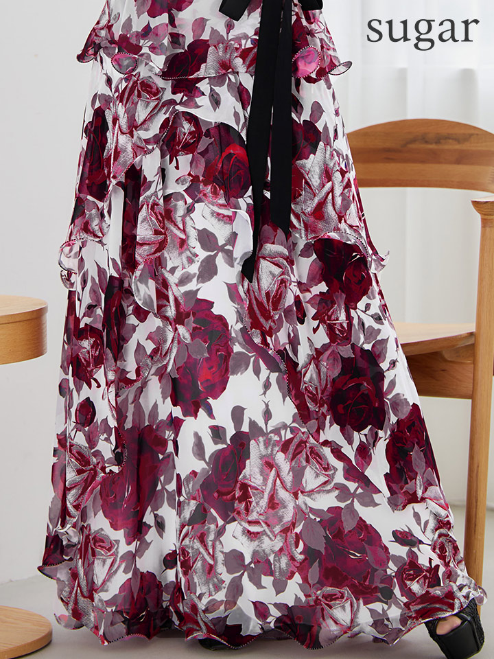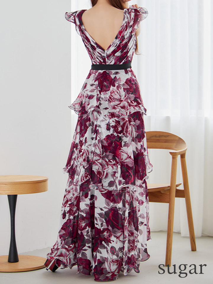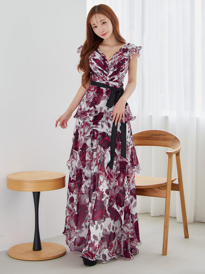 XS-Lサイズあり【SETTAN/セッタン】フリル/ フラワープリント/ シフォン/ 袖あり/ シアー/ ワンピース/ ロングドレス/ キャバドレス[OF2] [LKS36110-WxWR-S2510]