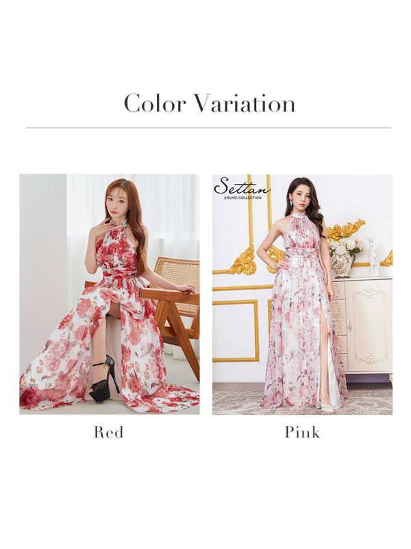 XS-Lサイズあり【SETTAN/セッタン】フラワー柄/ プリント/ シフォン/ アメスリ/ スリット/ Aライン/ ワンピース/ ロングドレス/ キャバドレス[OF2] [LKS37907-RxW-S2510]