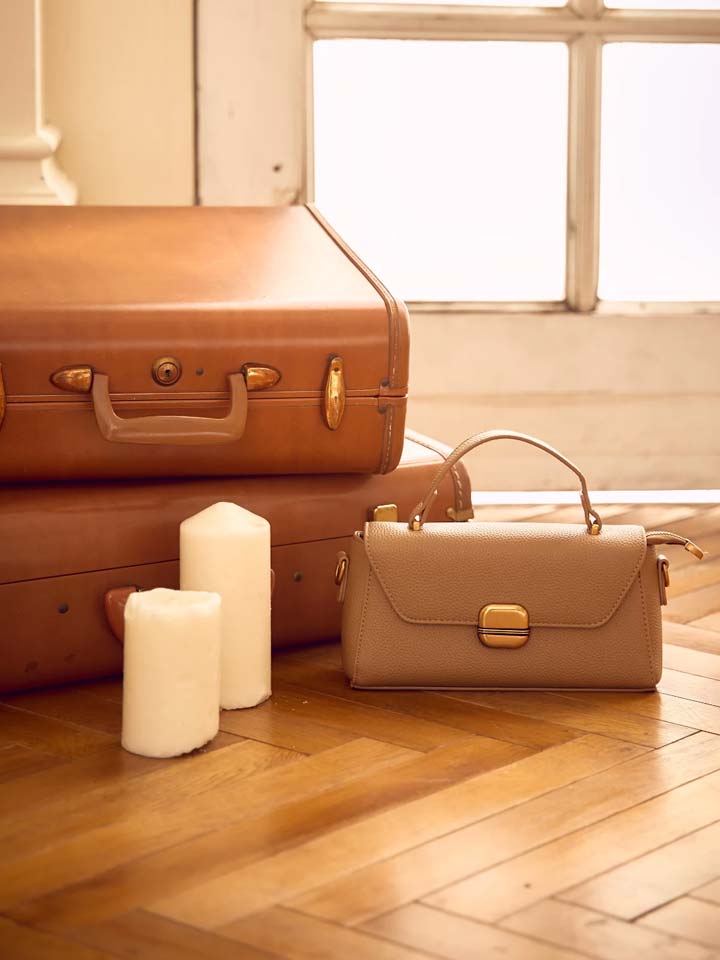 鈴のチャームがポイントの2wayバッグ。ハンドバッグとしても、ショルダーバッグとしても使えます。