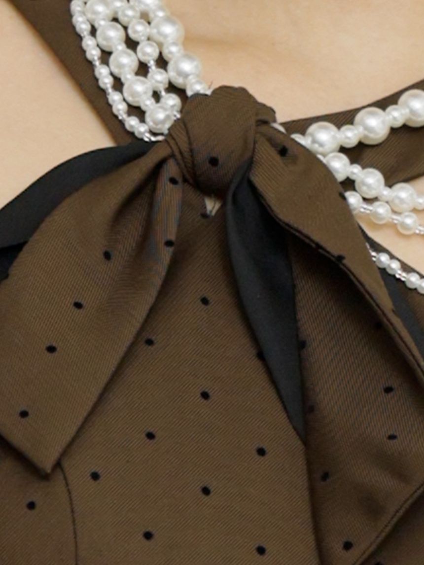 アクセサリー要らずで華やかに仕上がる、存在感のあるパール×リボンの襟元。