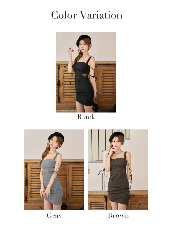 XSサイズあり【ANGEL R/エンジェルアール】サイドカット/ スリーブリボン/ タック/ メッシュ/ タイト/ ミニドレス/ キャバドレス[OF2] [AR25859-GY-S251020]