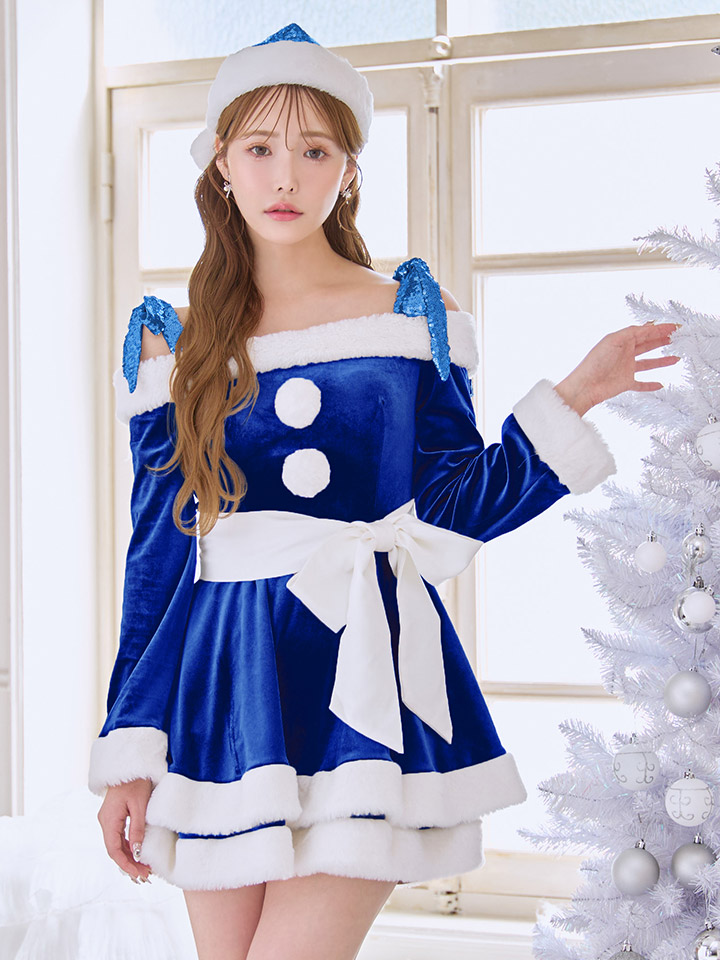 【一部予約 / 10月下旬発送予定】【送料無料!】【サンタ】グリッターリボン2段フレアサンタコスプレ【コスプレ4点セット】【XS-XLサイズ/8カラー】[OF03] [SS-7150-SB-BL-25RK]