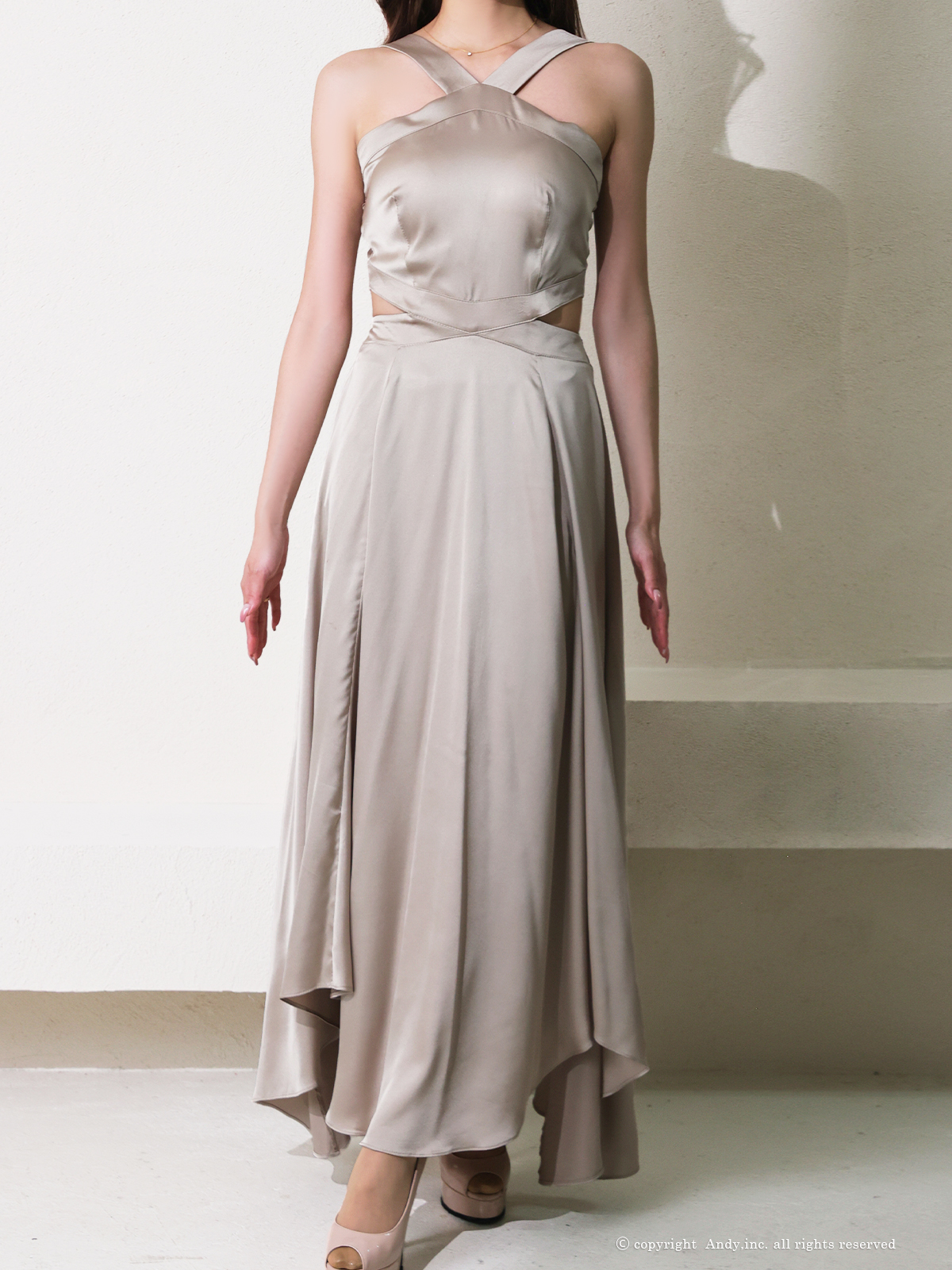 【Andy GLAMOROUS/アンディグラマラス】クロスホルター/ ウエストカット/ シンプル/ ロングドレス/ キャバドレス long[OF05] [OK3008-W-2510]
