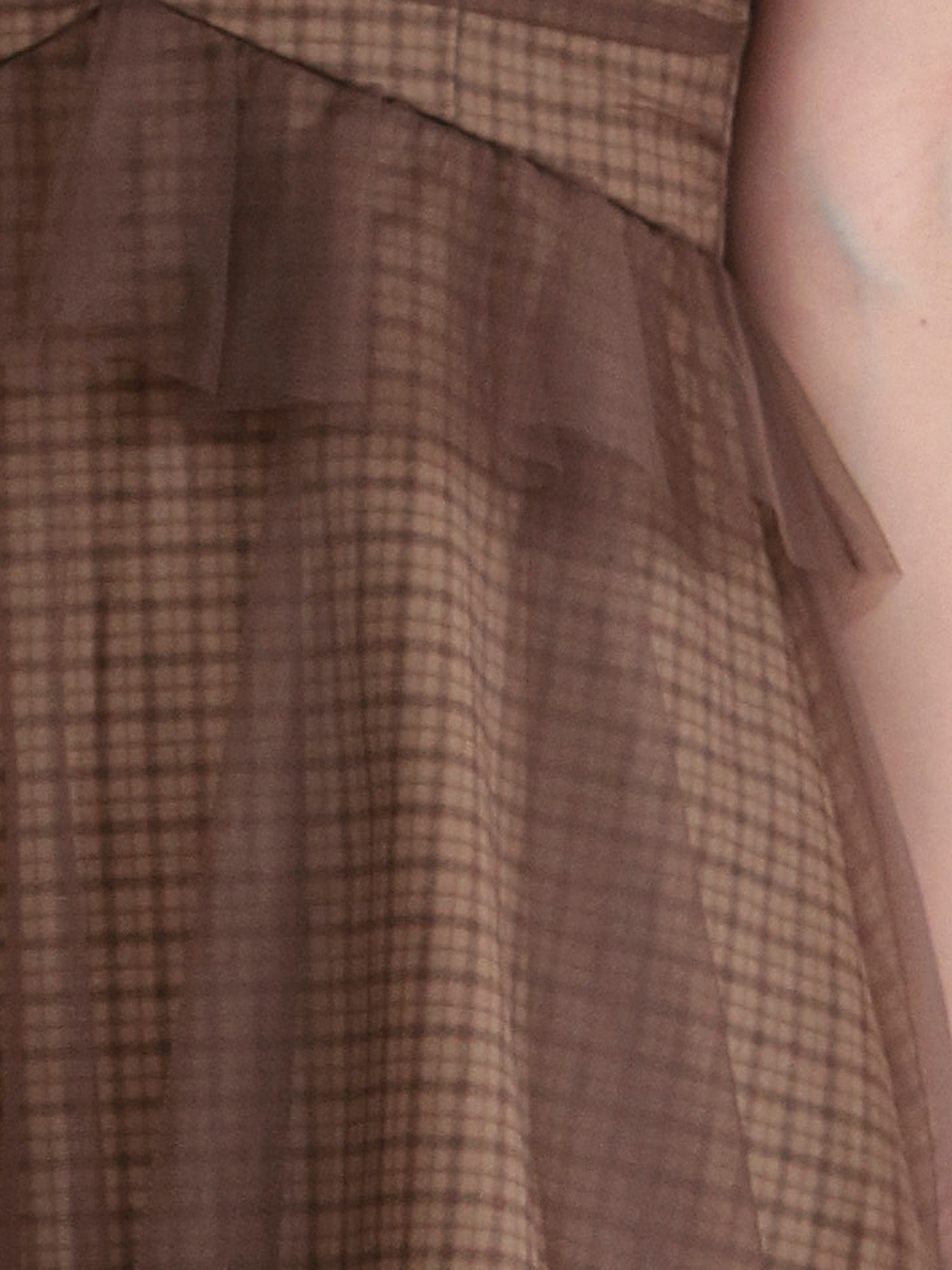 繊細なチェック柄にチュールを重ねた、抜け感のあるガーリーデザイン。