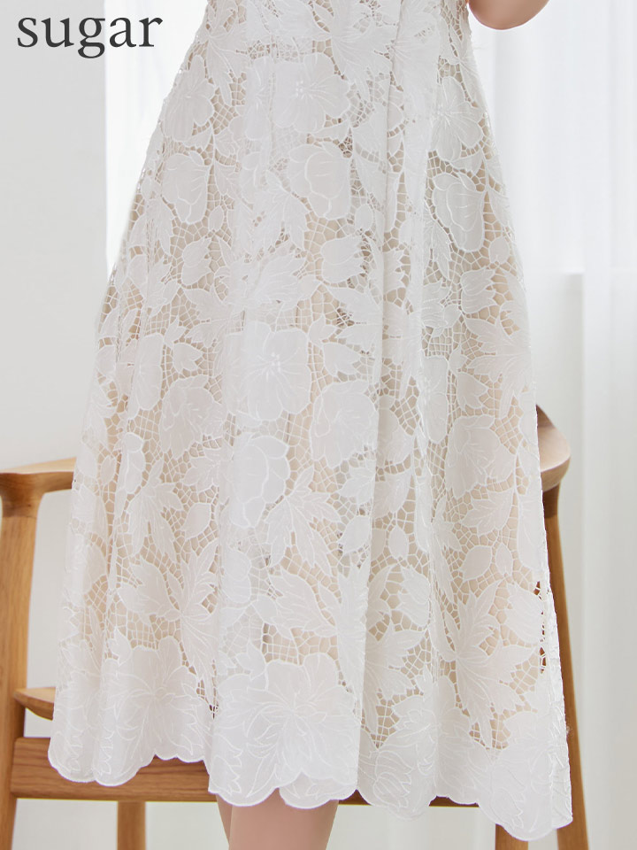 フェミニンなフラワーレースが大人可愛いフレアミディアムドレス♡