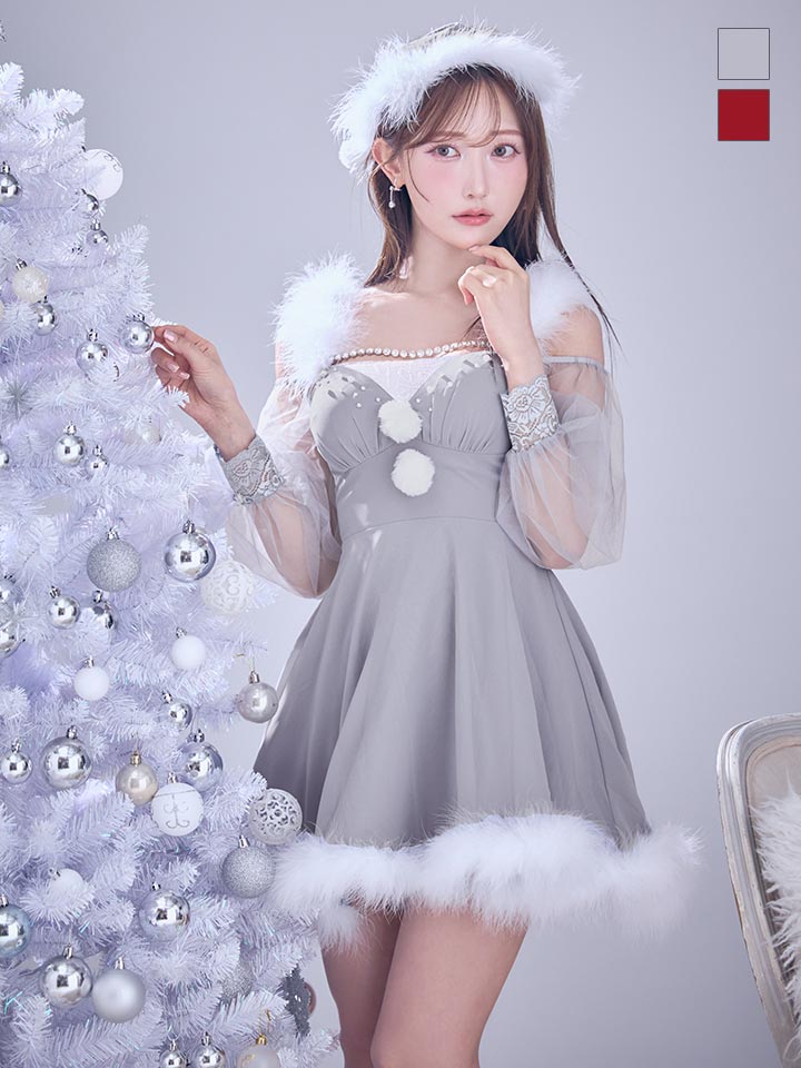 【ノベルティ対象】【即日発送】【サンタコス 3点セット】【XS-XLサイズ/2カラー】シアーチュールオフショルダーサンタコスプレ[YMT] [SS-134-YN-dzwg-BL-25YI]