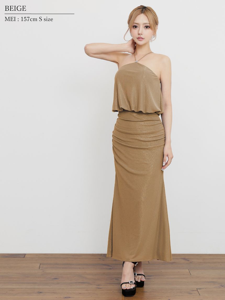 【ANGEL R/エンジェルアール】ホルターネック/ チャーム/ ラメ/ タイト/ ロングドレス/ キャバドレス[OF2] [AR25345-BE-2510]