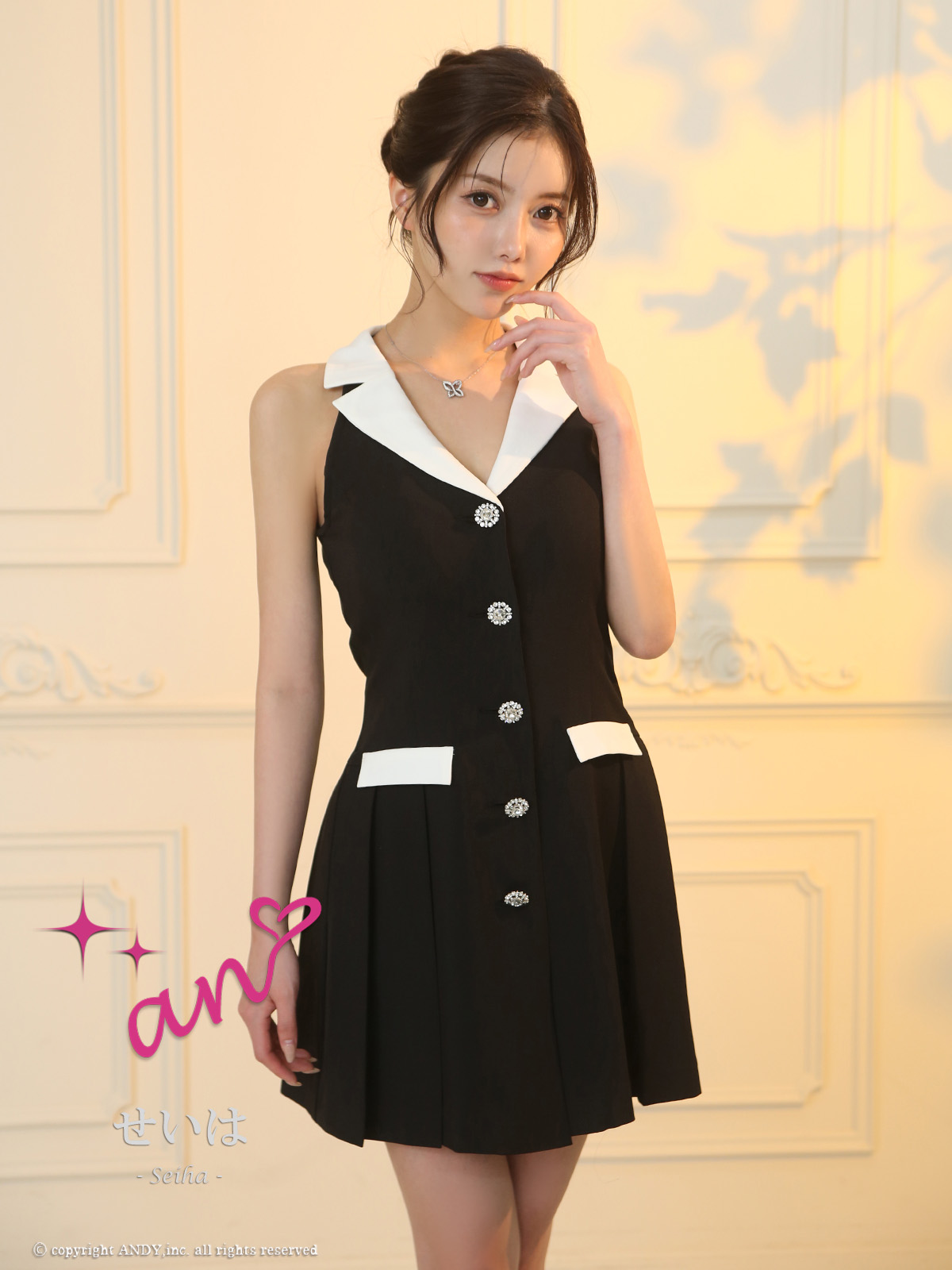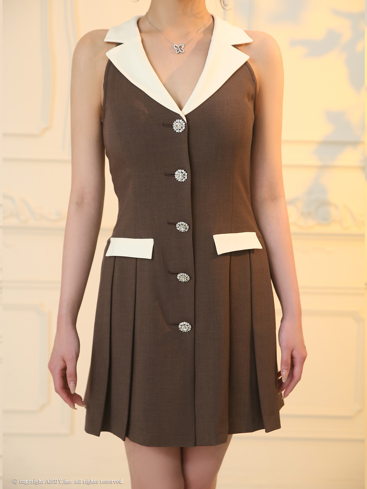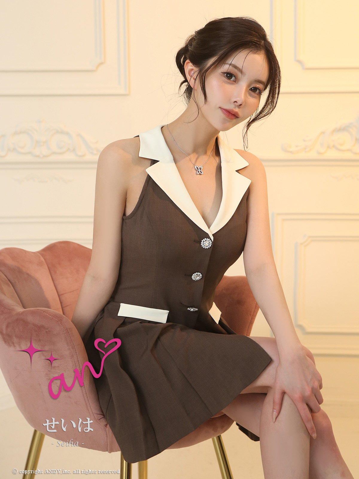 XSサイズあり【an /アン】襟付き/ ビジューボタン/ シンプル/ ポケットデザイン/ プリーツ/ フレア/ ノースリーブ/ ミニドレス/ キャバドレス[OF05] [AOC4005-BRxIV-2510]