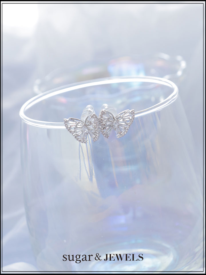 繊細なビジューが輝きを放つバタフライモチーフピアス