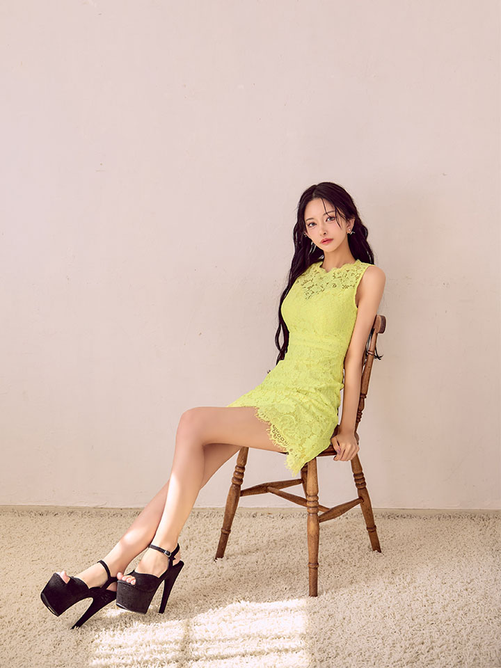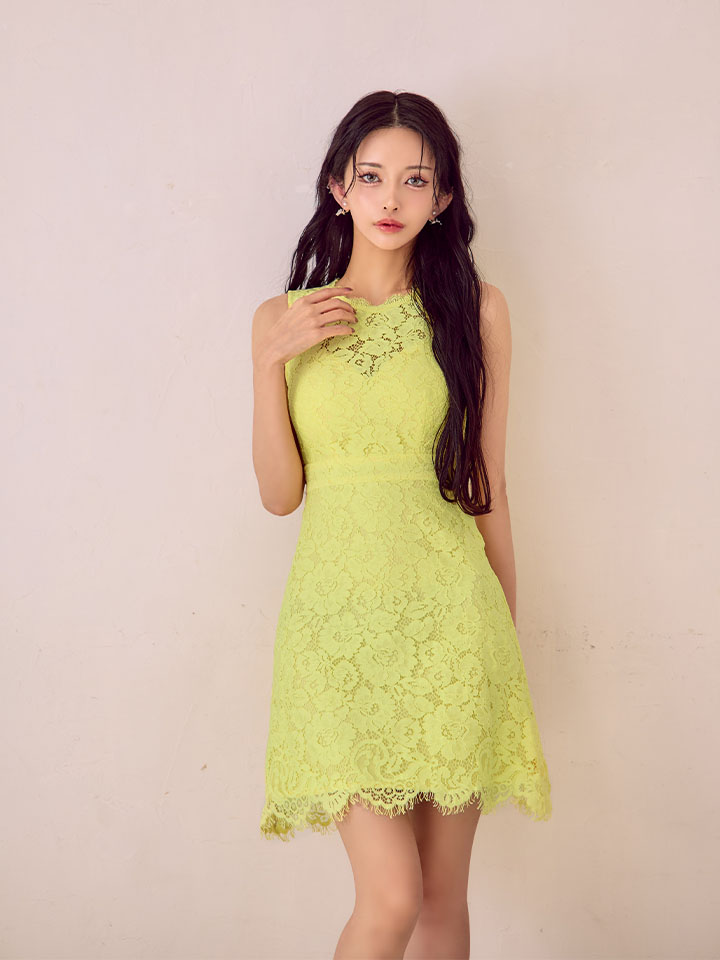 XS-Lサイズあり【ERUKEI エルケイ】総レース/ ノースリーブ/ 花柄/ スカラップ/ Aライン/ ワンピース/ ミニドレス/ キャバドレス[OF2] [LKE25156-Y-S2510]