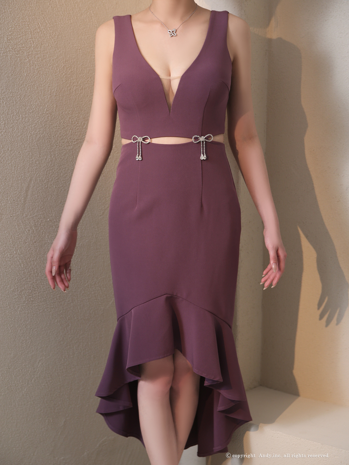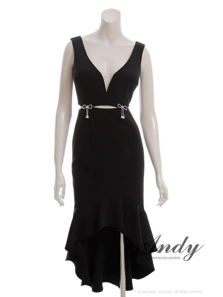 XSサイズあり【ANDY/アンディ】ウエストカット/ ノースリーブ / フリル/ テールカット/ ミディアムドレス/ キャバドレス[OF05] [ON3009-W-2510]