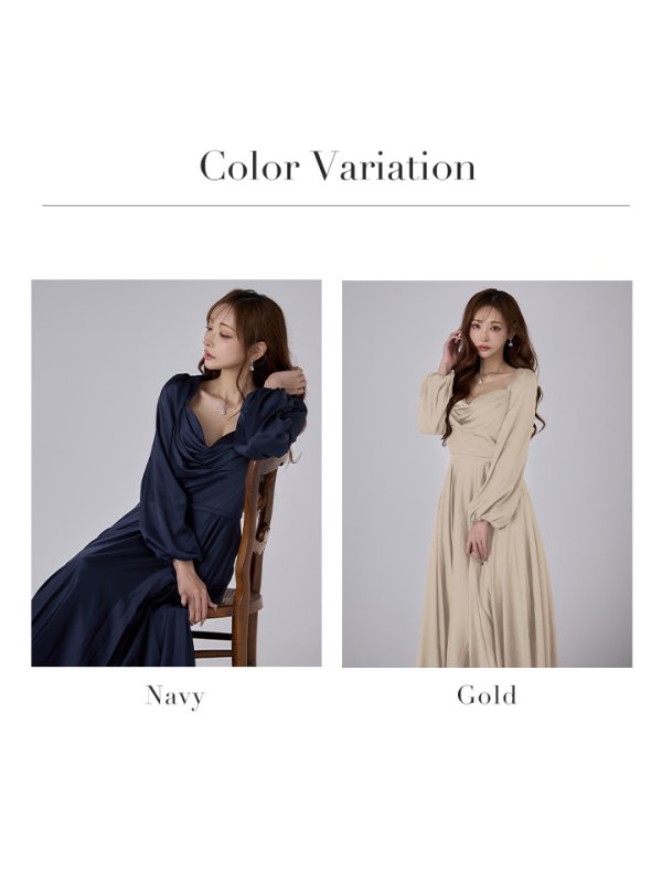 Lサイズあり【JEAN MACLEAN/ジャンマクレーン】サテン/ バストドレープ/ シンプル/ ワンカラー/ 谷間魅せ/ ロングスリーブ/ ロングドレス/ キャバドレスlong[OF2A] [51952-JM-GD-S251022]