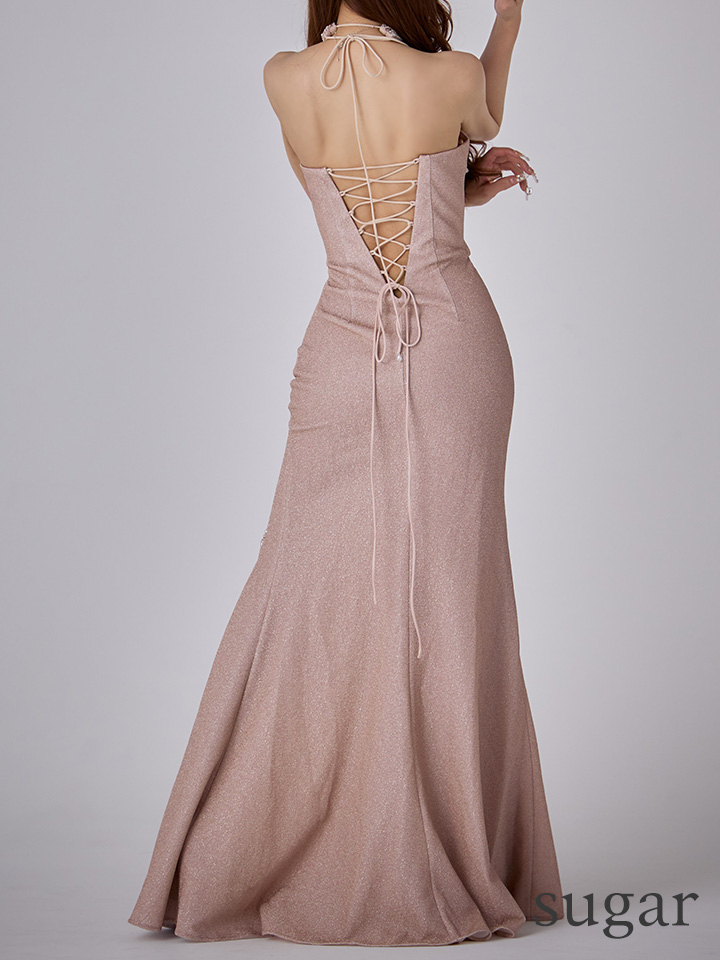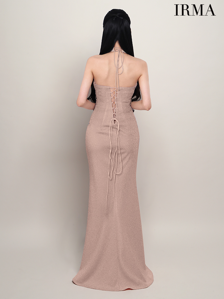 【予約商品/10月下旬発送予定】【IRMA/イルマ】ビジュー刺繍/ ラメ/ ホルターネック/ シアー/ カットアウト/ スリット/ タイト/ ロングドレス/ キャバドレス long[OF2A] [51944-IR-B-S251022]