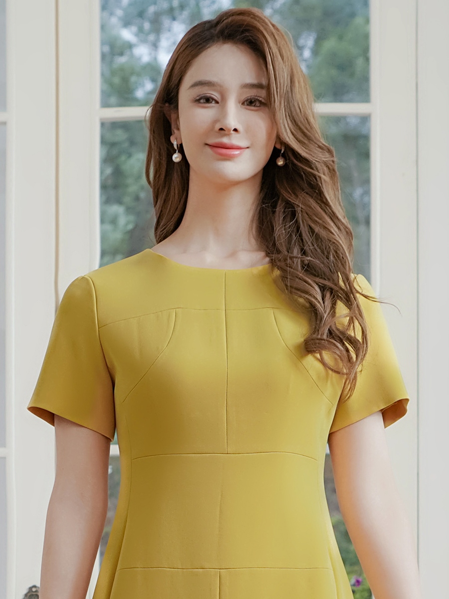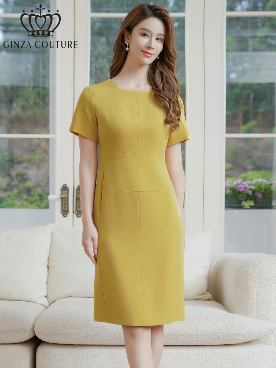 XS-Lサイズあり【GINZA COUTURE/銀座クチュール】 シンプル/ ワンカラー/ 半袖/ 袖あり/ 膝丈/ タイト/ ミディアムドレス/ キャバドレス[OF2] [LKC24146-Y-2510]