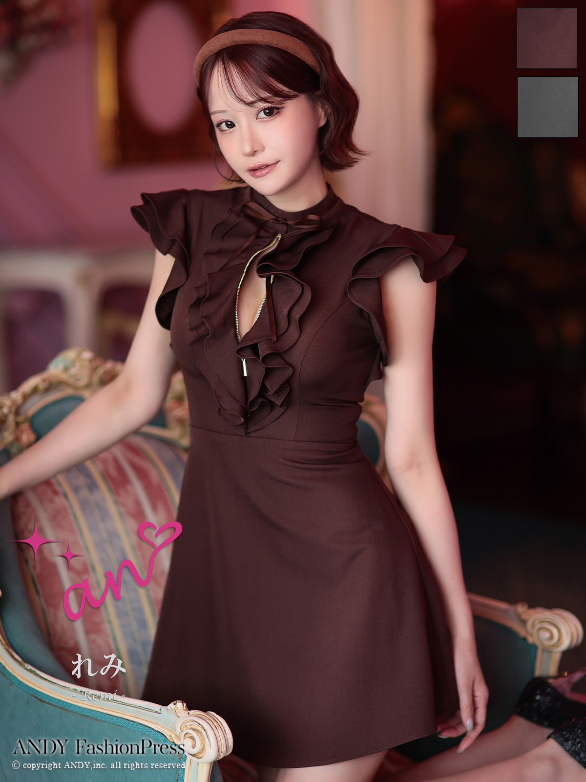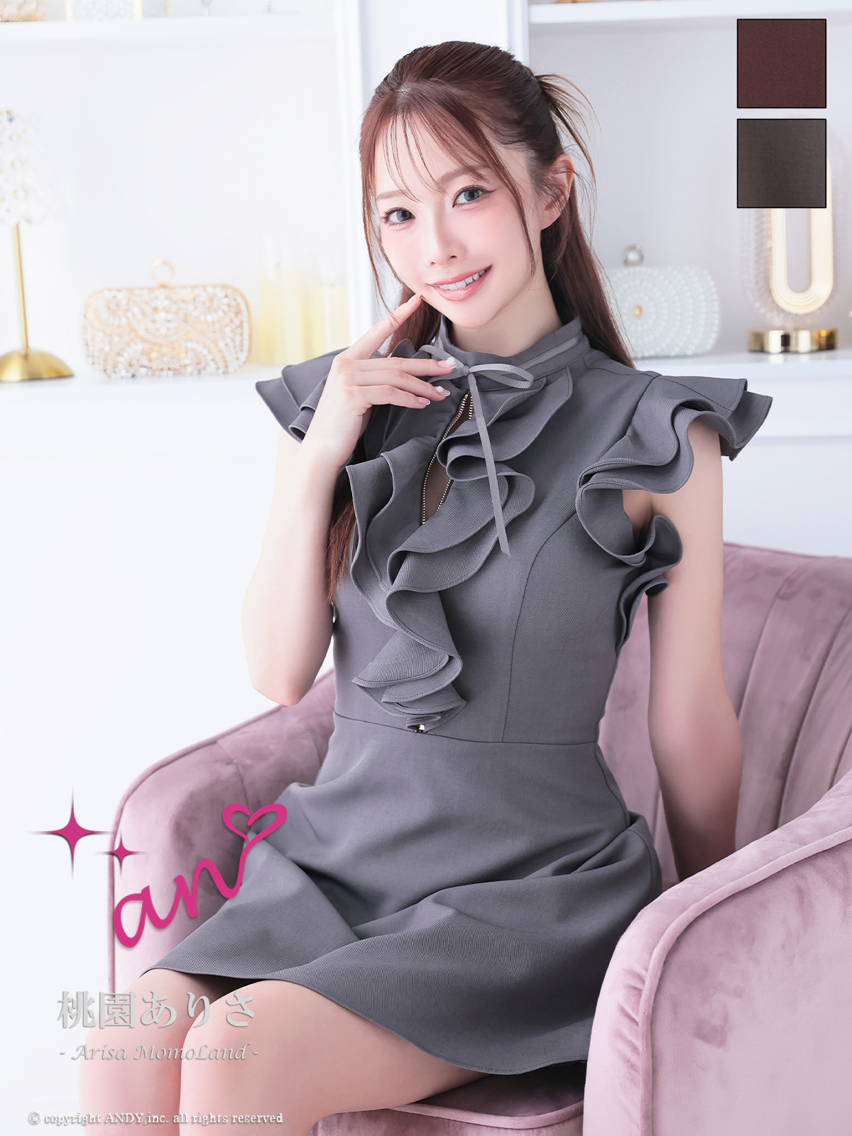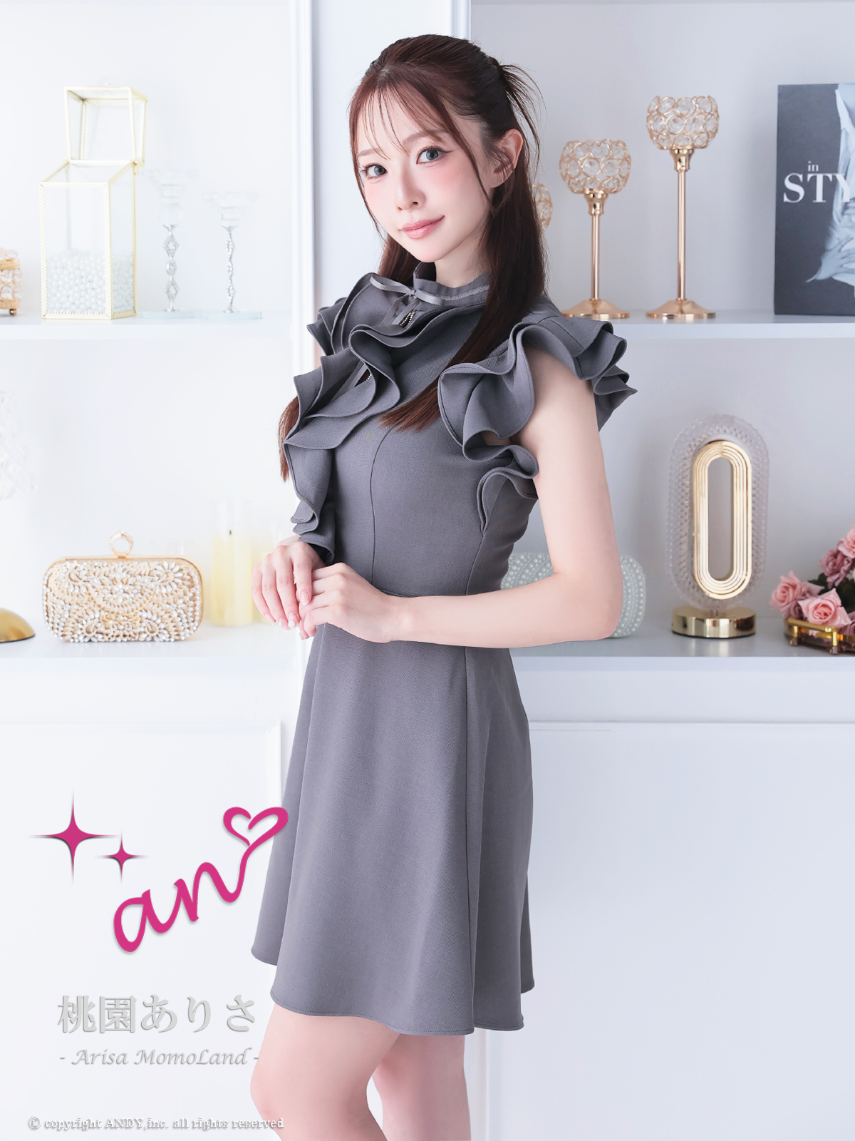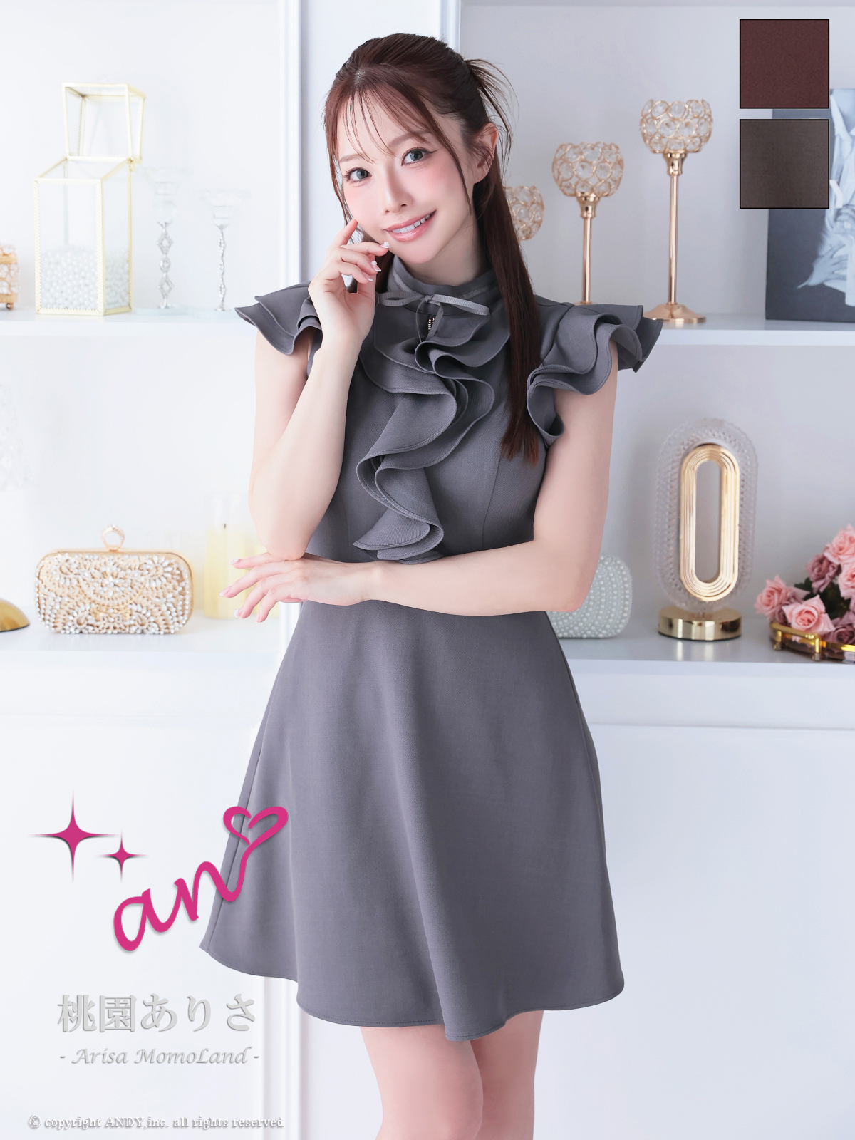 XSサイズあり【an/アン】フリル/ ハイネック/ ショートスリーブ/ Aライン/ フレア/ ミニドレス/ キャバドレス[OF05] [AOC3991-GY-2510]