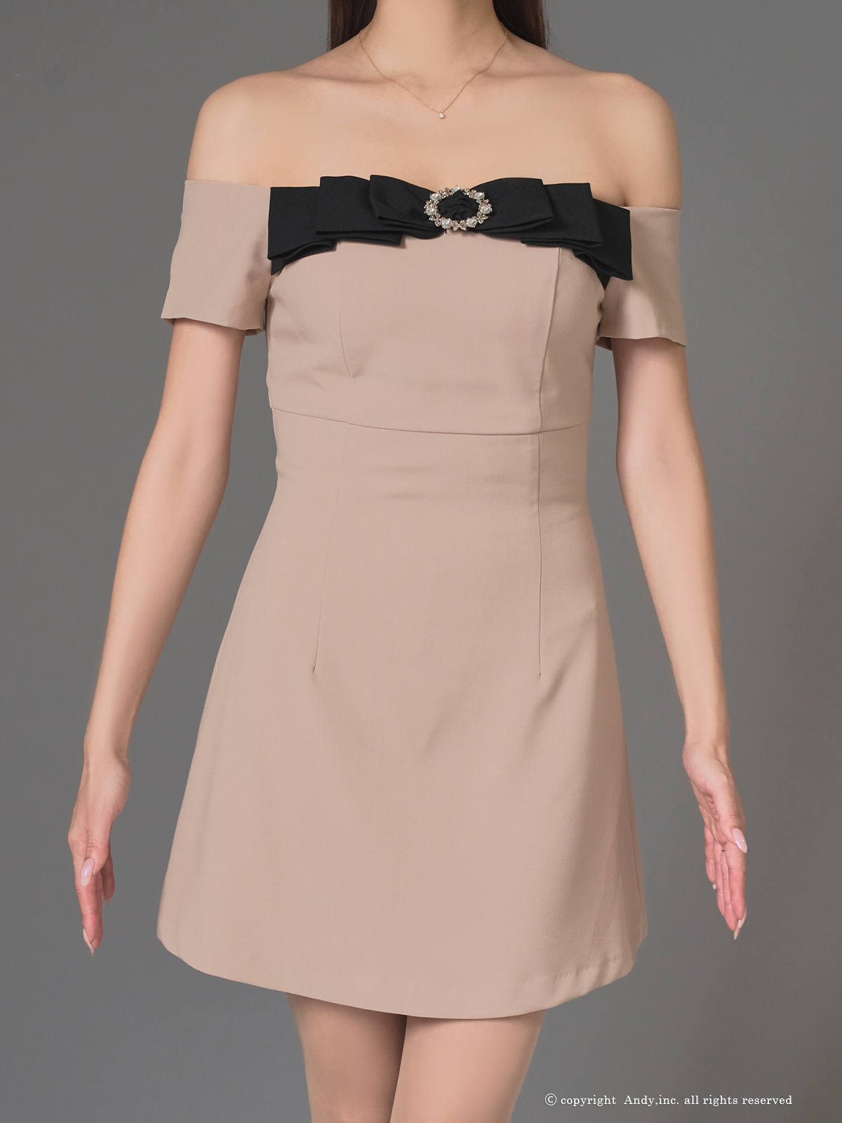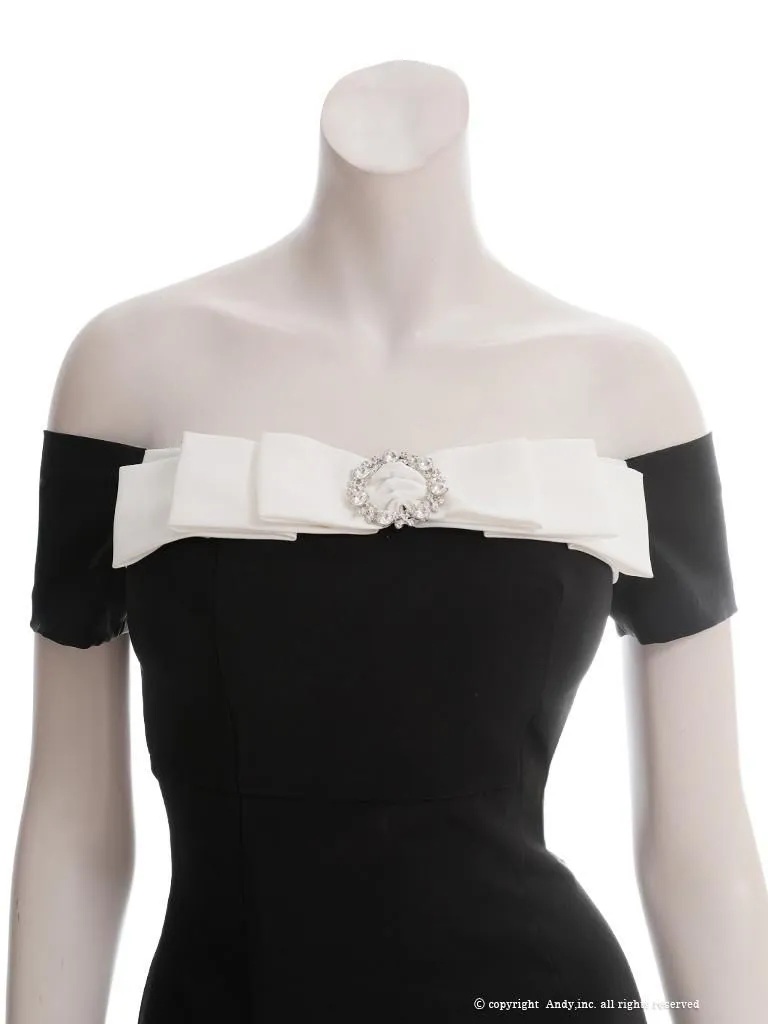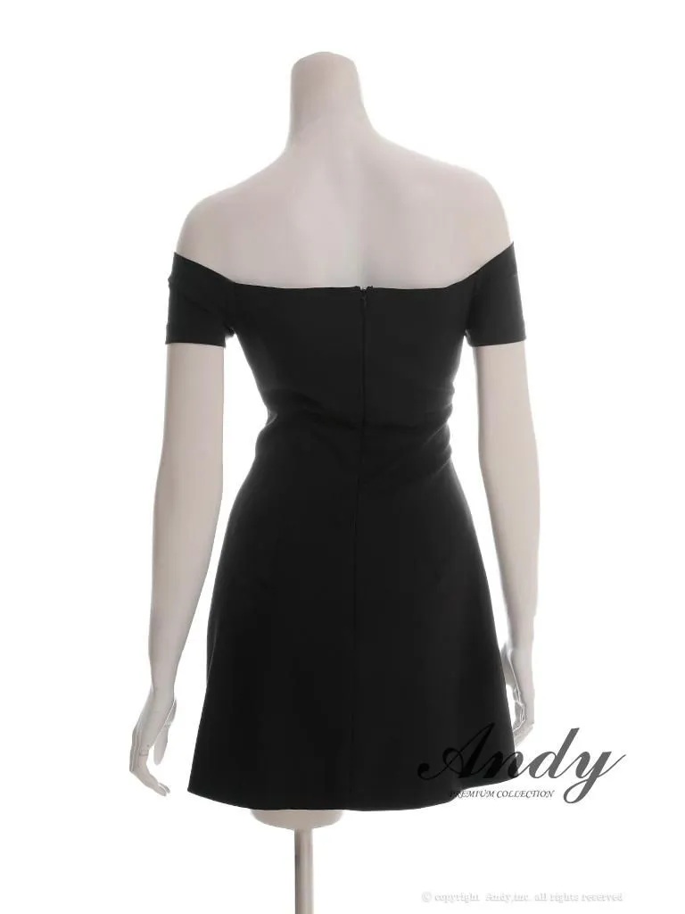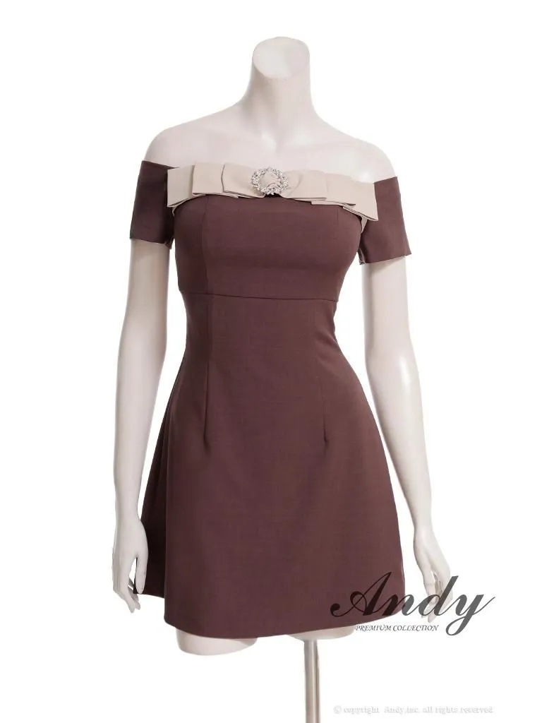 XSサイズあり【ANDY/アンディ】オフショル/ リボン/ ブローチ/ Aライン/ フレア/ ワンピース/ ミニドレス/ キャバドレス[OF05] [ON3019-B-2510]