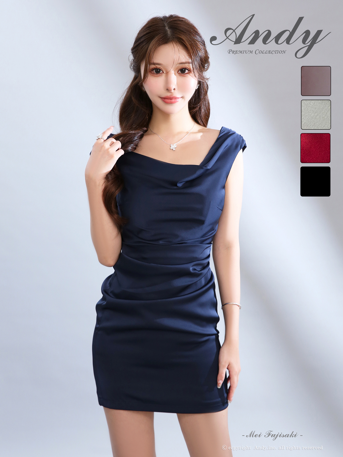 XSサイズあり【ANDY/アンディ】ドレープ/ チェーン/ サテン/ タイト/ ミニドレス/ キャバドレス[OF05] [ON2992-Mo-2510]