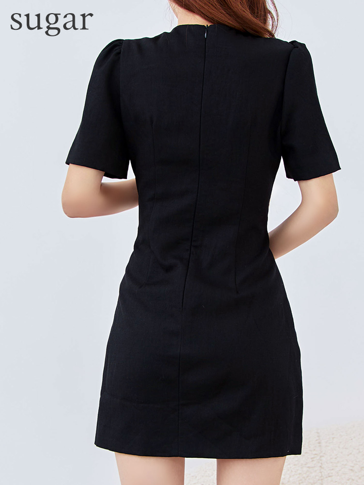 XS-Lサイズあり 【GINZA COUTURE/銀座クチュール】パール/ ラインストーン/ 半袖/ 袖あり/ シンプル/ フレア/ Aライン/ ワンピース/ ミニドレス/ キャバドレス[OF2] [LKC2872-B-S2510]