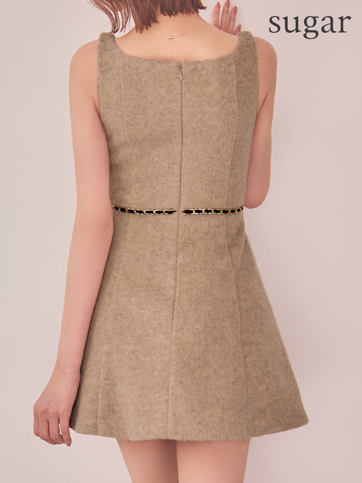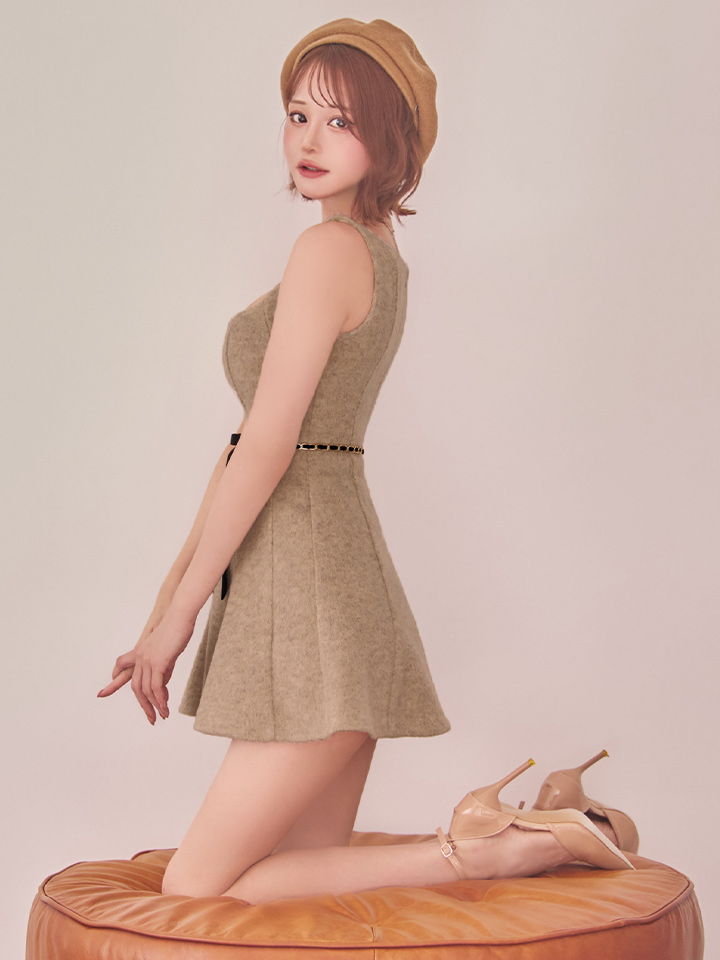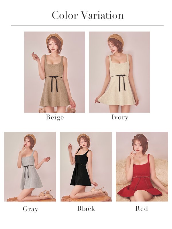 XSサイズあり【ROBE de FLEURS/ローブドフルール】ウエストリボン/ ラメ入りメルトン/ フレア/ ミニドレス/ キャバドレス[OF08] [FM3474-BE-S251025]