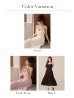 細身のストラップと胸元のサテンの切り替えがデコルテを美しく見せ、スタイルアップ効果も抜群。
