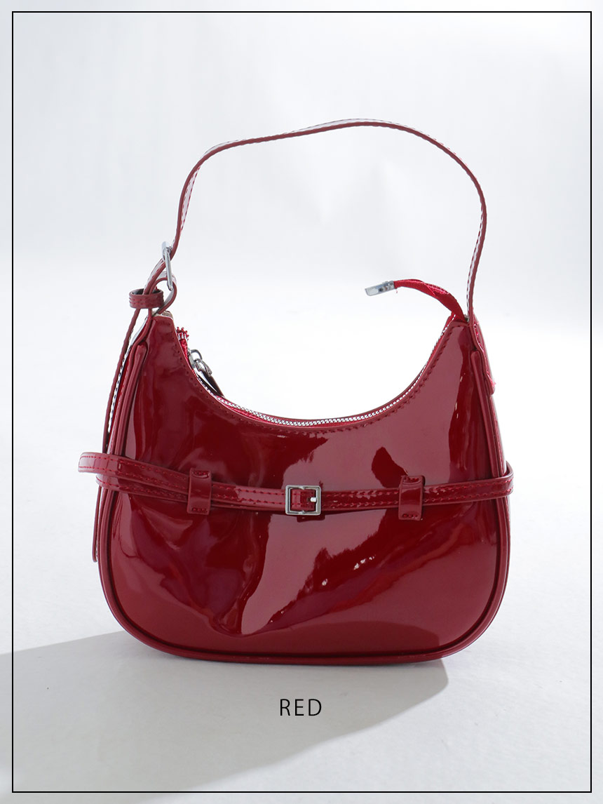 【バッグ】エナメルハーフムーンバッグ【Fサイズ/4カラー】[OF03] [B1057-251027-1]
