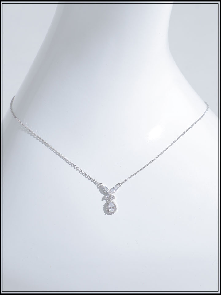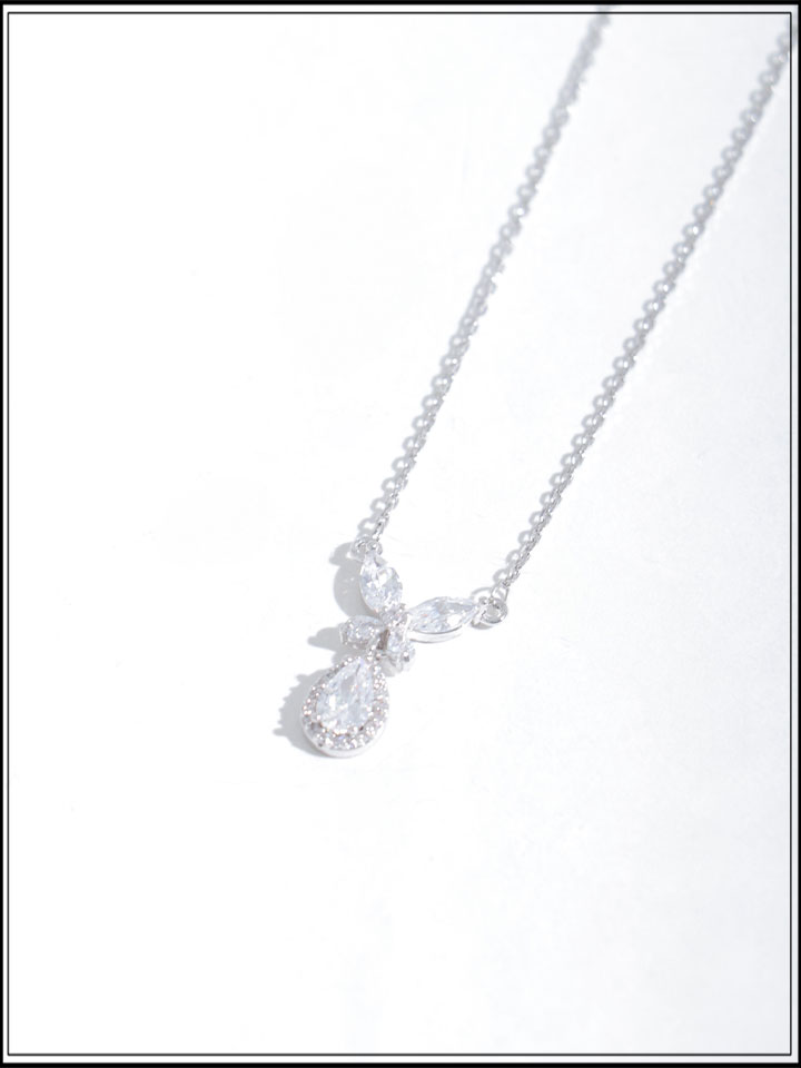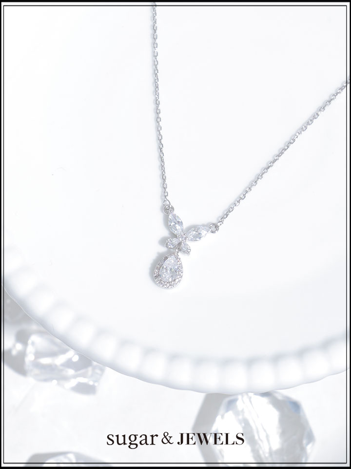 バタフライととドロップ型のストーンが煌めくネックレス。