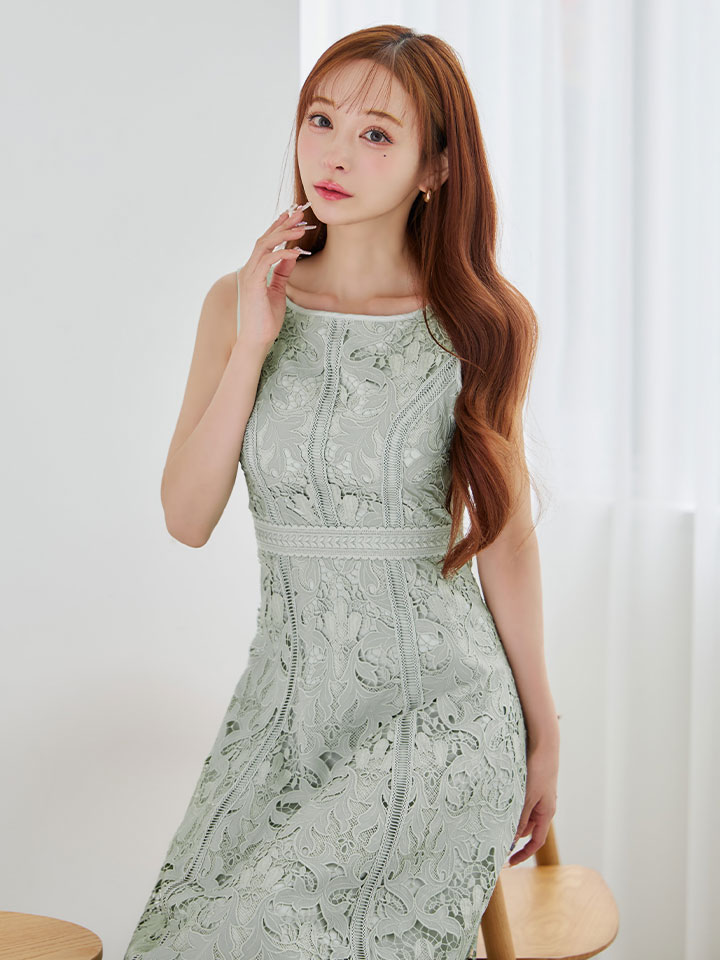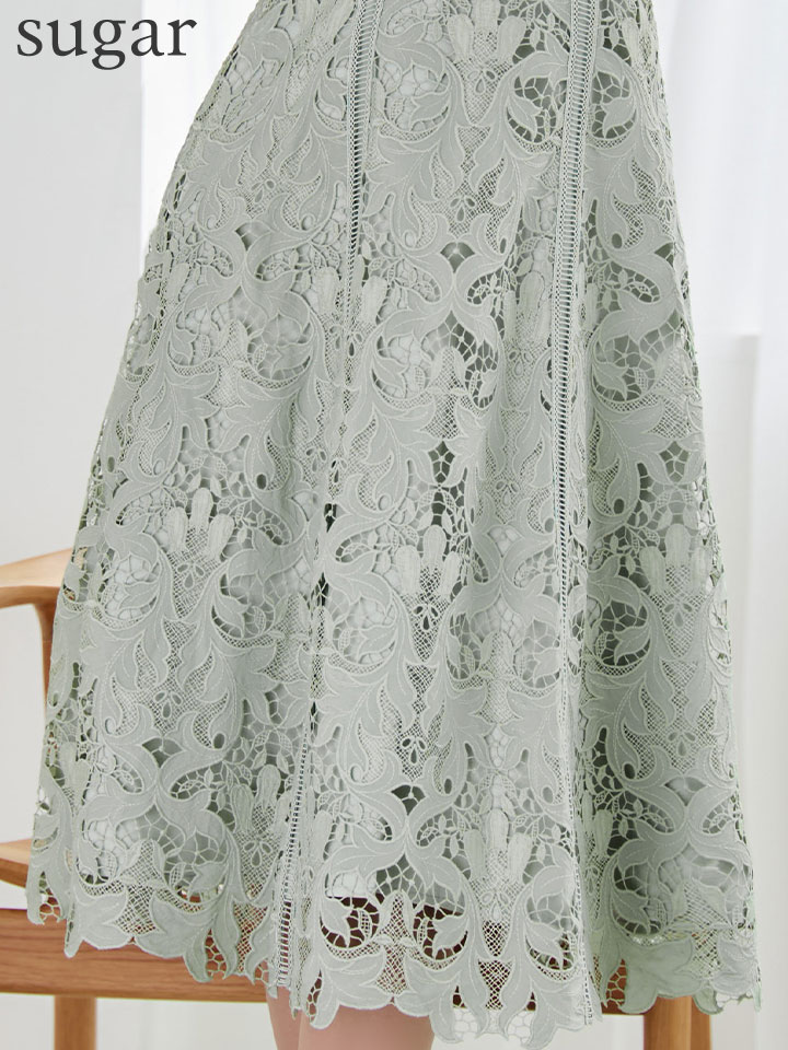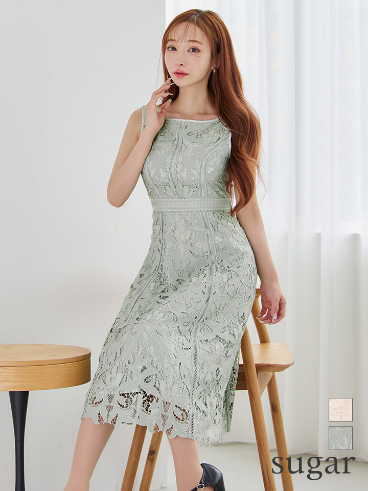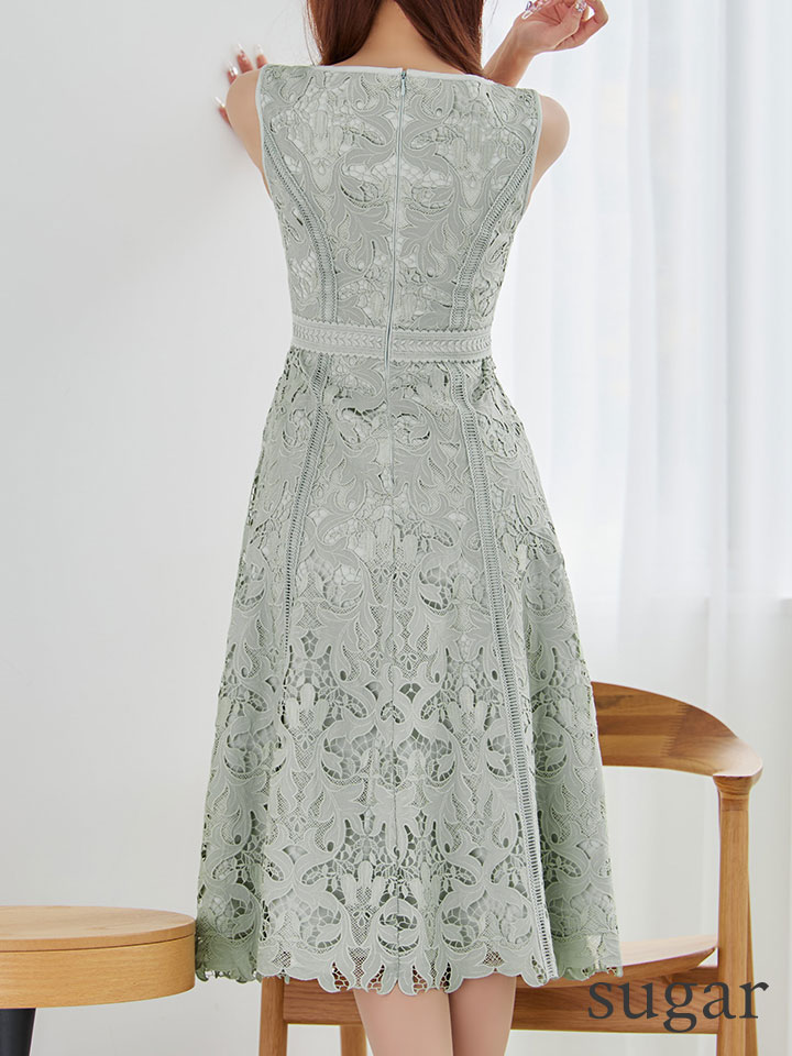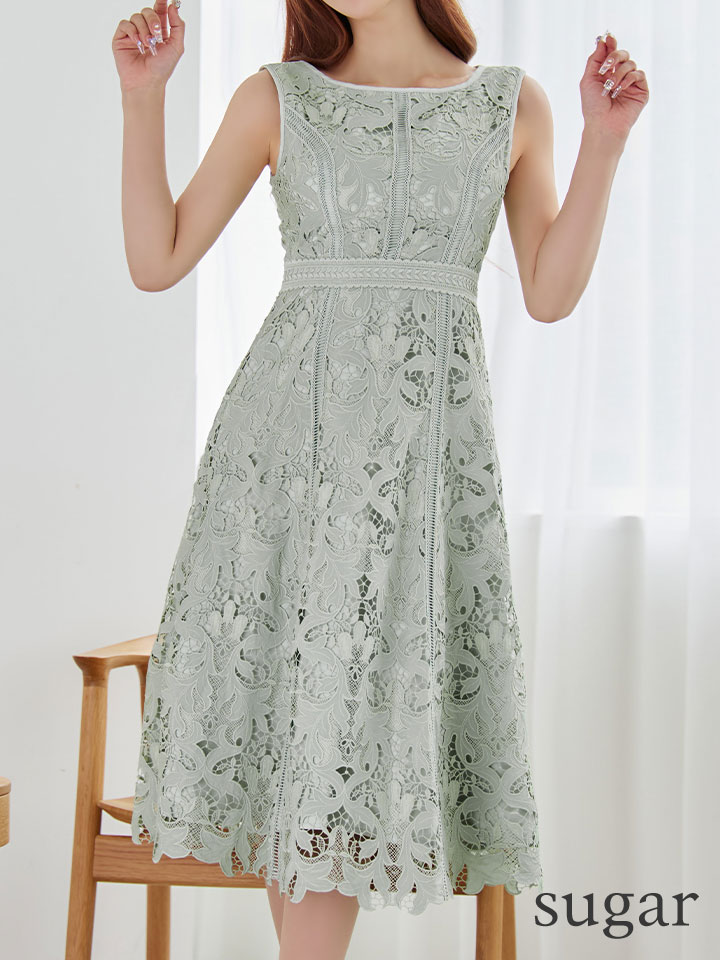 XS-Lサイズあり【SETTAN/セッタン】フラワーレース/ 総レース/ ノースリーブ/ ハイウエスト/ Aライン/ フレア/ ワンピース/ ミディアムドレス/ キャバドレス[OF2] [LKS25085-GR-S2510]