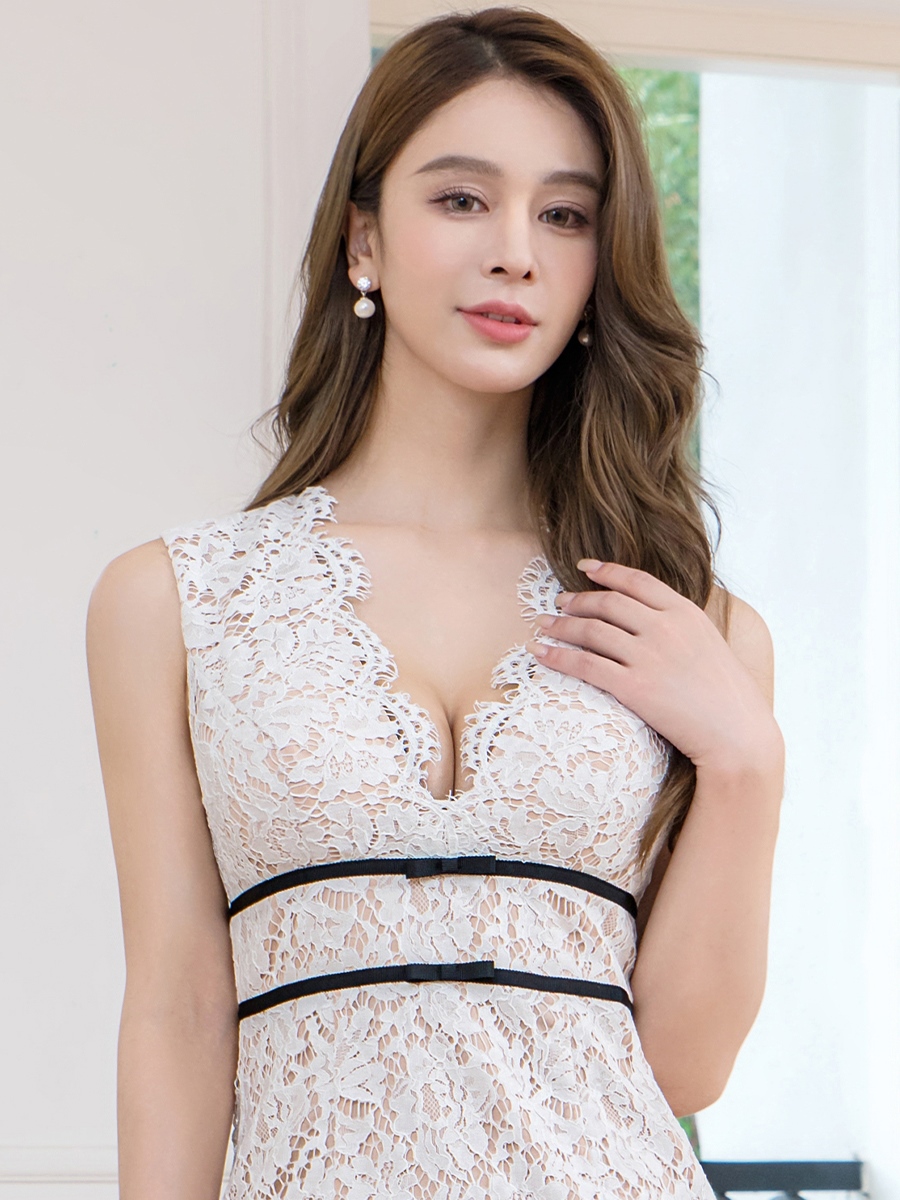 XS-Lサイズあり【ERUKEI エルケイ】ウエストマーク/ シアー/ 総レース/ ノースリーブ/ インナーミニ/ バックスリット/ Vネック/ タイト/ ロングドレス/ キャバドレス[OF2] [LKE25020-W-2510]