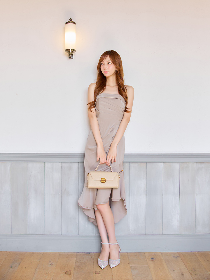 アシンメトリーのマーメイドフリルが優雅に揺れるミディアムドレス♡