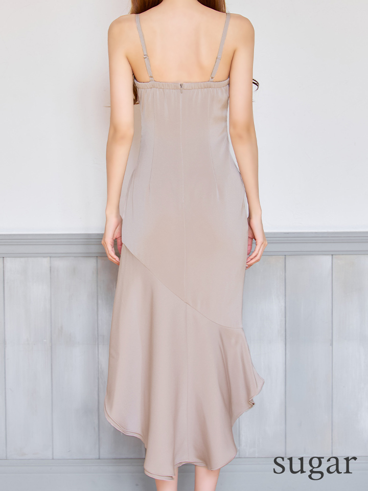 Lサイズあり【JEAN MACLEAN/ジャンマクレーン】サテン/ タック/ ワンカラー/ キャミ/ アシンメトリー/ マーメイド/ ミディアムドレス/ キャバドレス[OF2A] [51941-JM-GYGE-S251029]