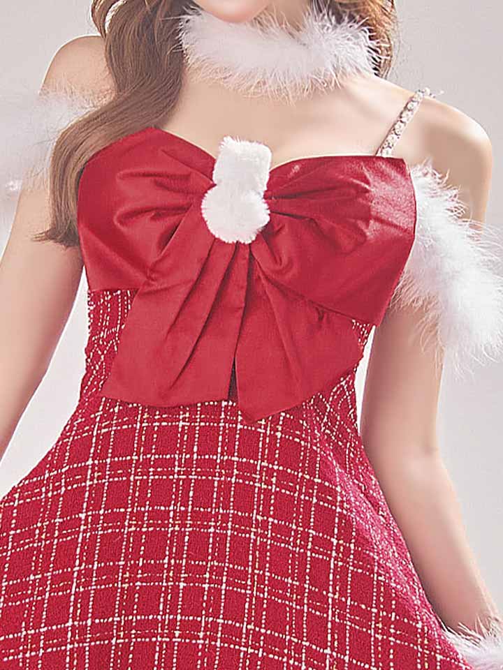 【ノベルティ対象】【即日発送!】【サンタコス 5点セット】【S-XLサイズ/1カラー】リボンキャミソールフレアツイードサンタコスプレ[YMT] [SS-098-YN-dzj-R-25AS]