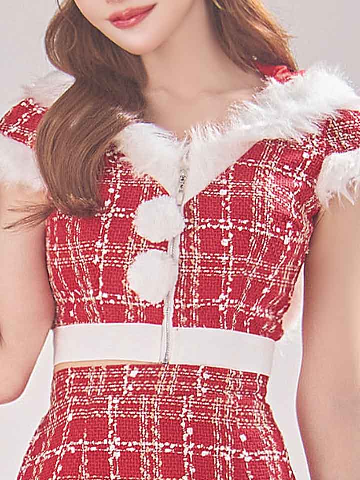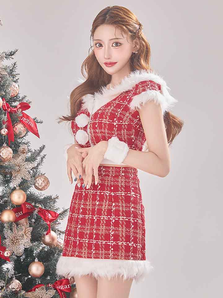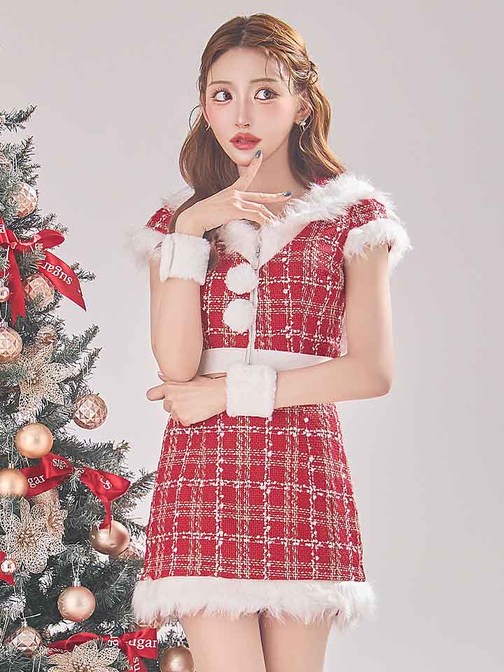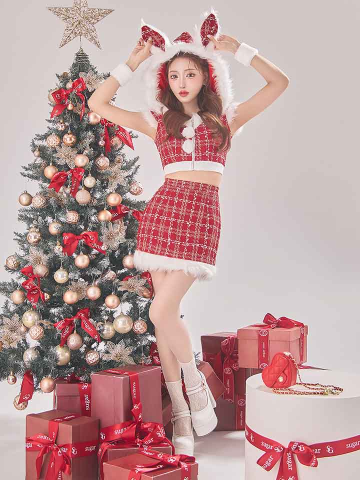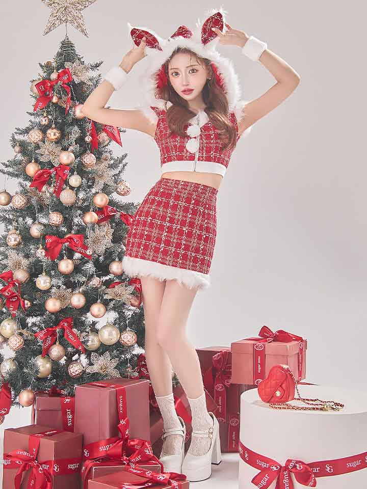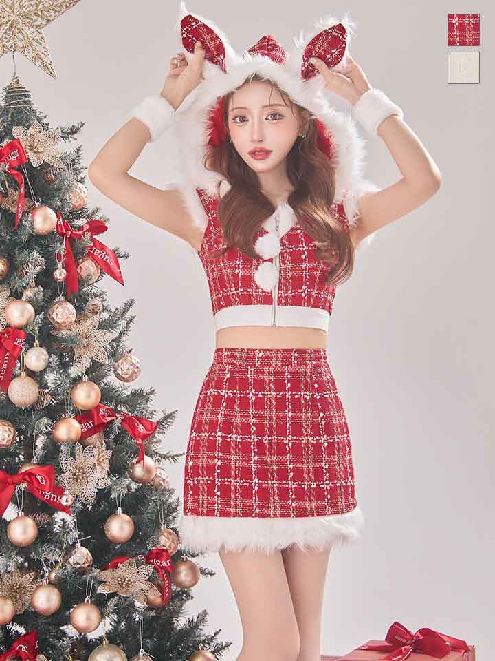 【即日発送!】【サンタコス5点セット】【XS-XLサイズ/2カラー】ツイードチェックバニーサンタコスプレ[YMT] [SS-090-YN-dzwj-W-25AS]