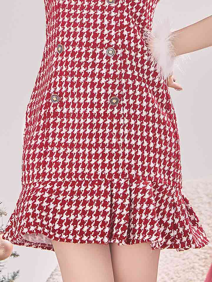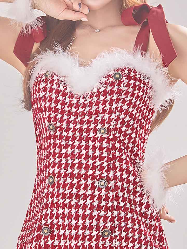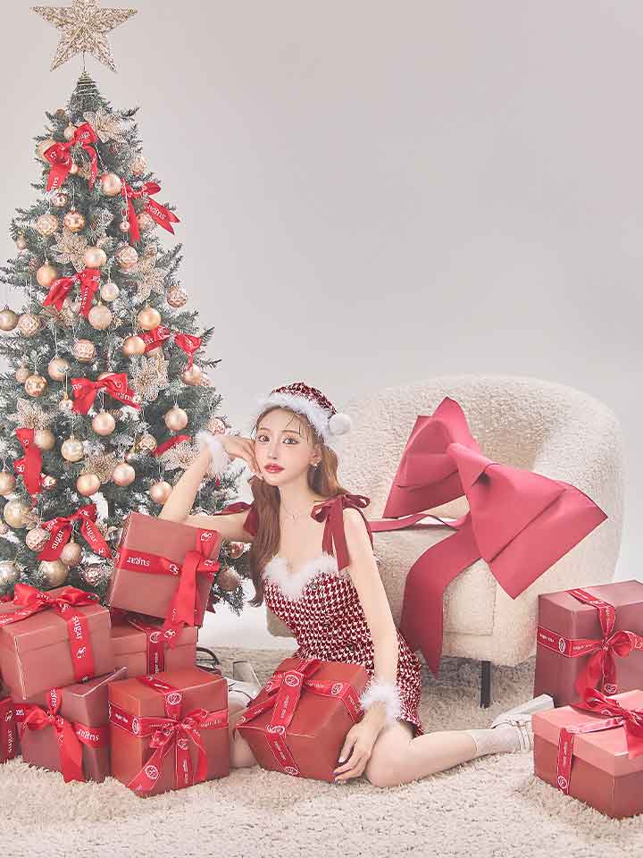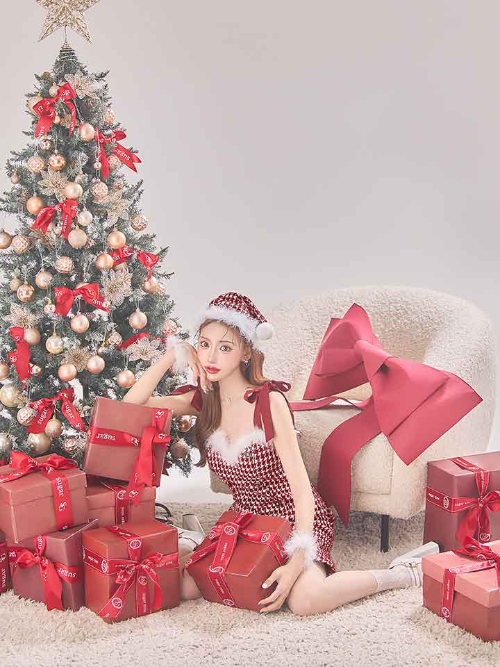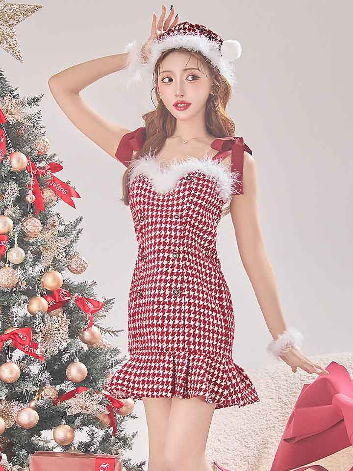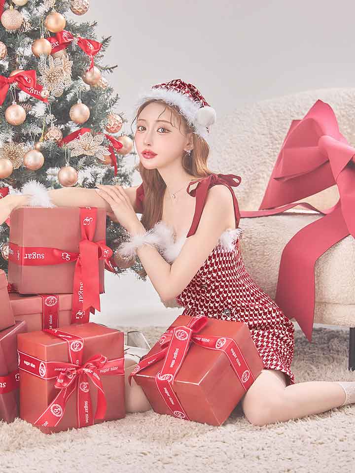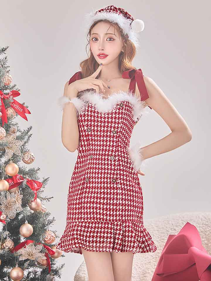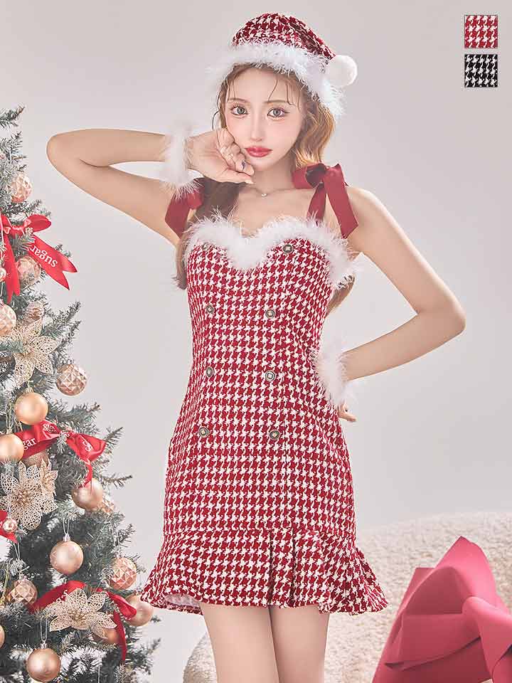 SALE!【サンタコス 4点セット】【S-Lサイズ/2カラー】ショルダーリボン千鳥タイトサンタコスプレ[YMT] [2238-SB-dzw-R-25AS]