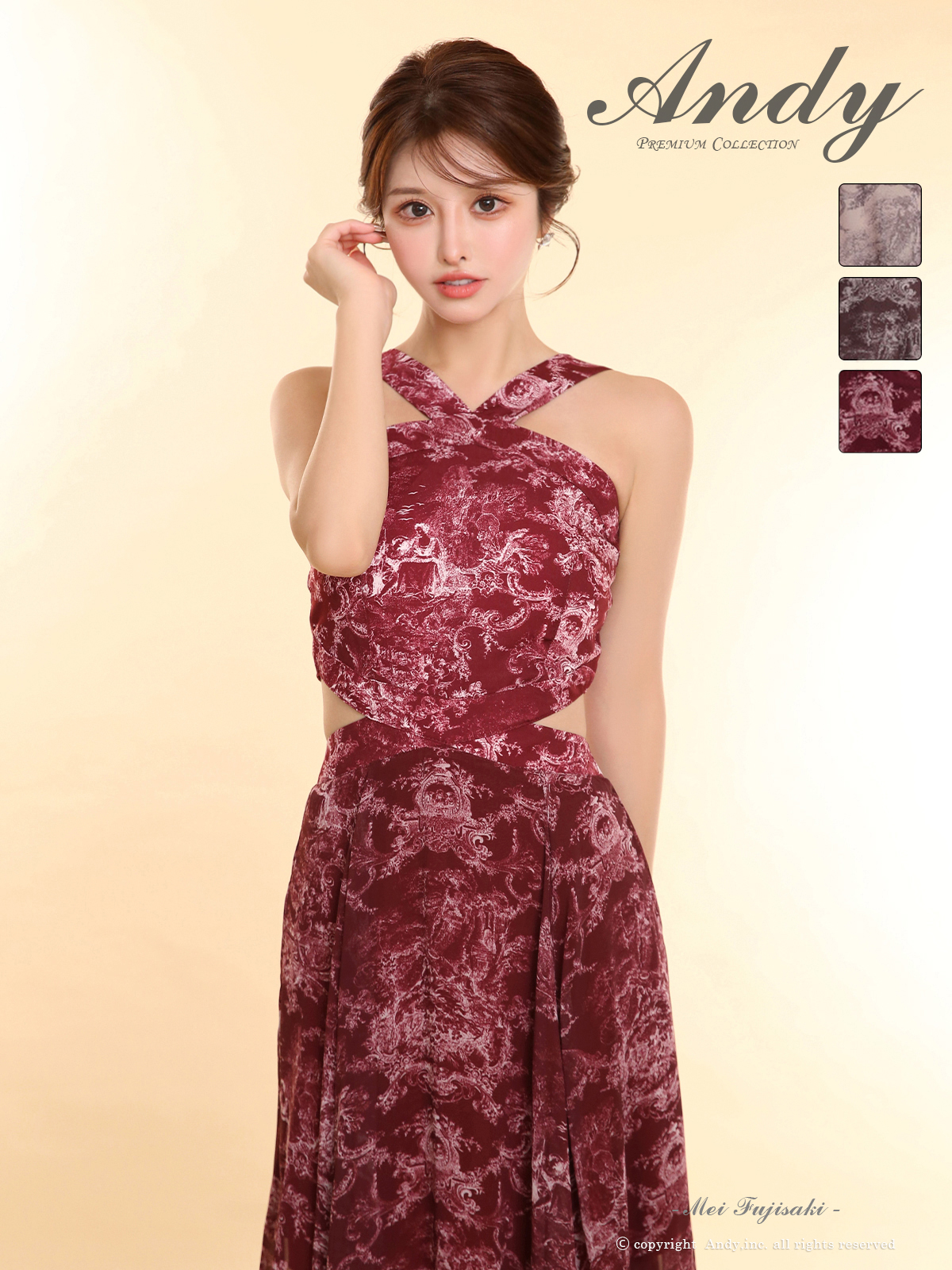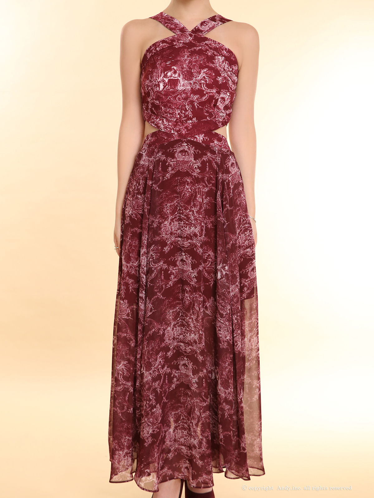 XSサイズあり【ANDY/アンディ】ホルターネック/ クラシカルプリント/ ウエストカット/ シフォン/ フレア/ マキシ丈/ ワンピース/ ロングドレス/ キャバドレスlong[OF05] [ON3015-BR-2510]