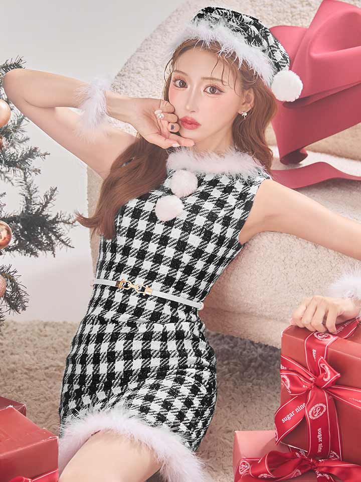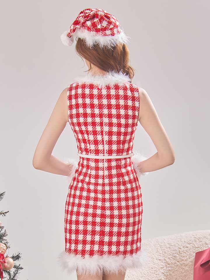 【サンタコス 5点セット】ギンガムチェック タイトワンピースサンタコスプレ【XS-XLサイズ/2カラー】[YMT] [SS-8029-SB-R-25AS]