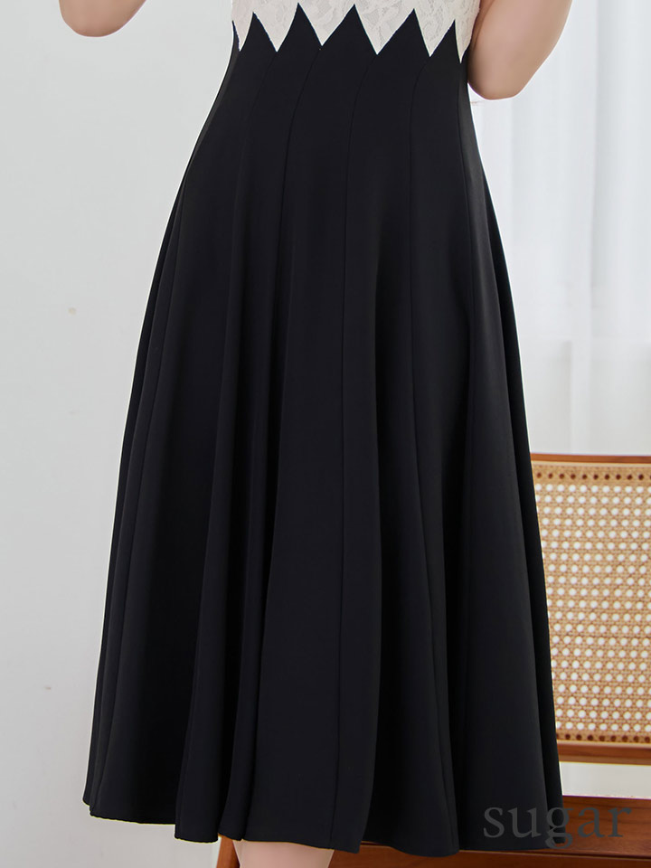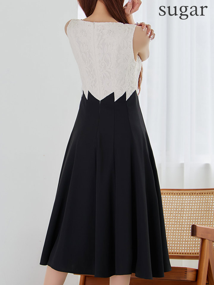 XS-Lサイズあり 【GINZA COUTURE/銀座クチュール】バイカラー/ シェブロン切替/ ノースリーブ/ ハイウエスト/ Aライン/ ミモレ丈/ ワンピース/ ミディアムドレス/ キャバドレス[OF2] [LKC25079-WxB-S2510]