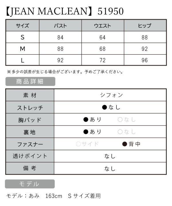 ※商品によって、ホック部分が金具に引っかけるタイプとドレス本体に引っかけるタイプがございます。【JEAN MACLEAN/ジャンマクレーン】