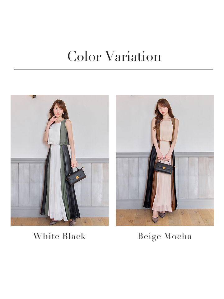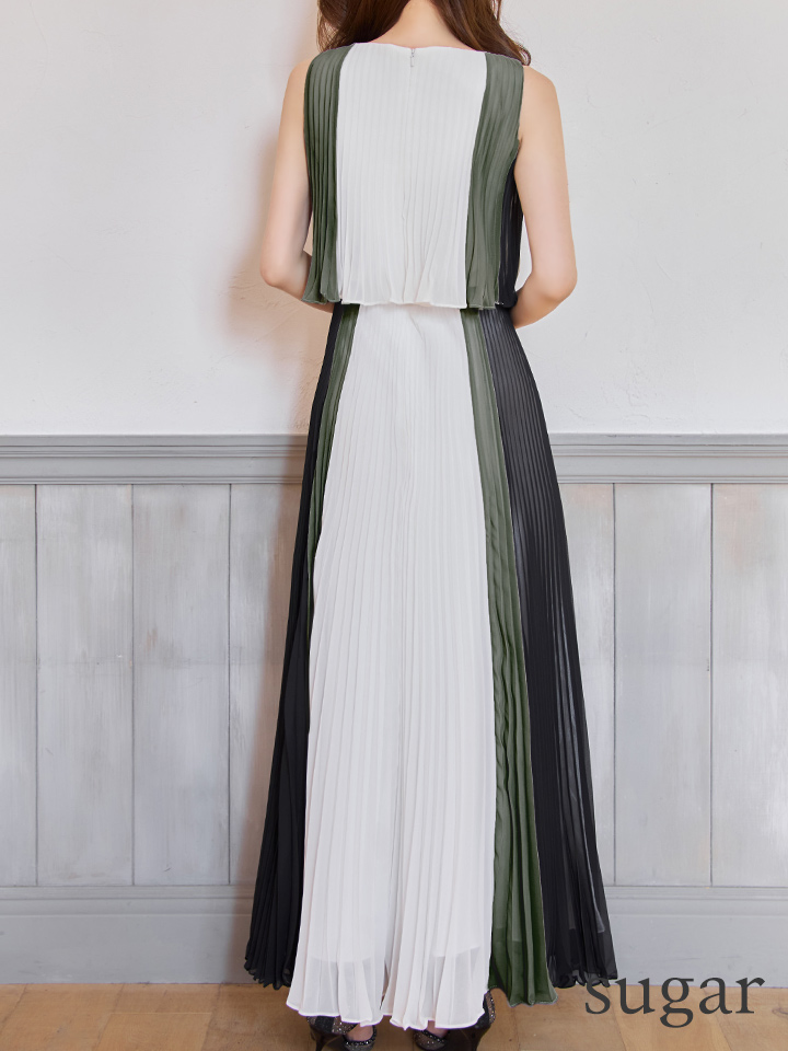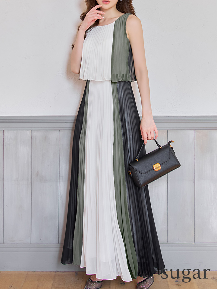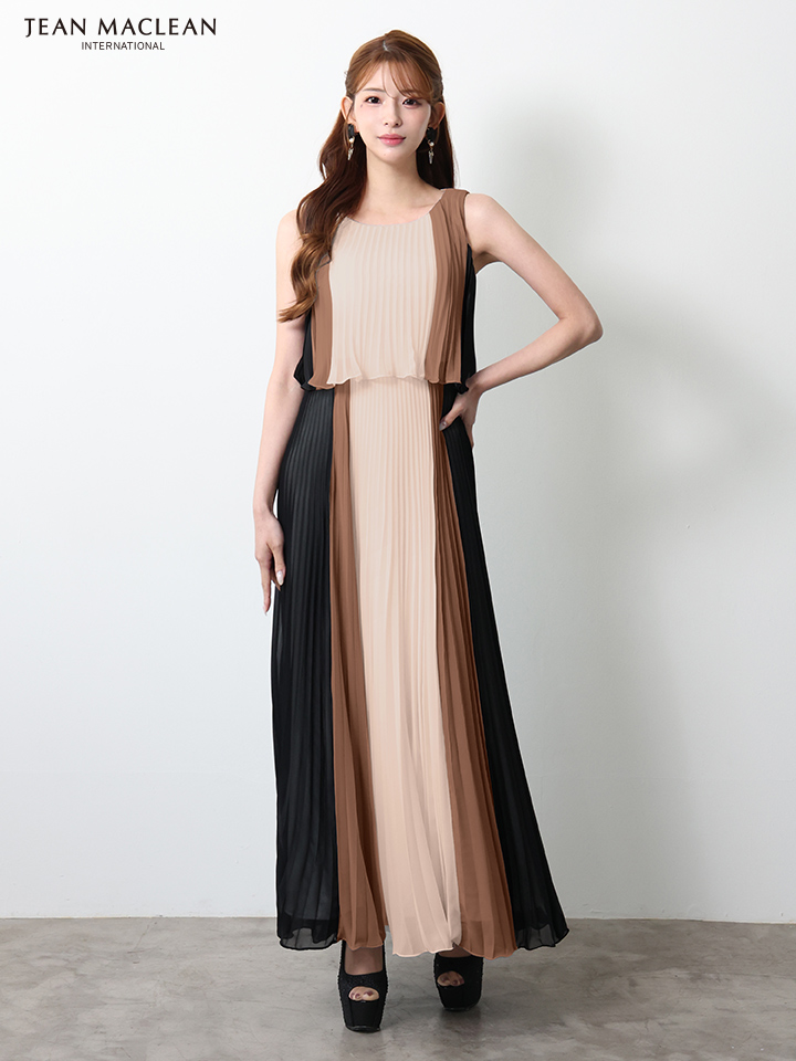 【JEAN MACLEAN/ジャンマクレーン】シフォン/ メロウ/ プリーツ/ マルチカラー/ ノースリーブ/ フレア/ ワンピース/ ロングドレス/ キャバドレスlong[OF2A] [51950-JM-BExMOC-S251029]