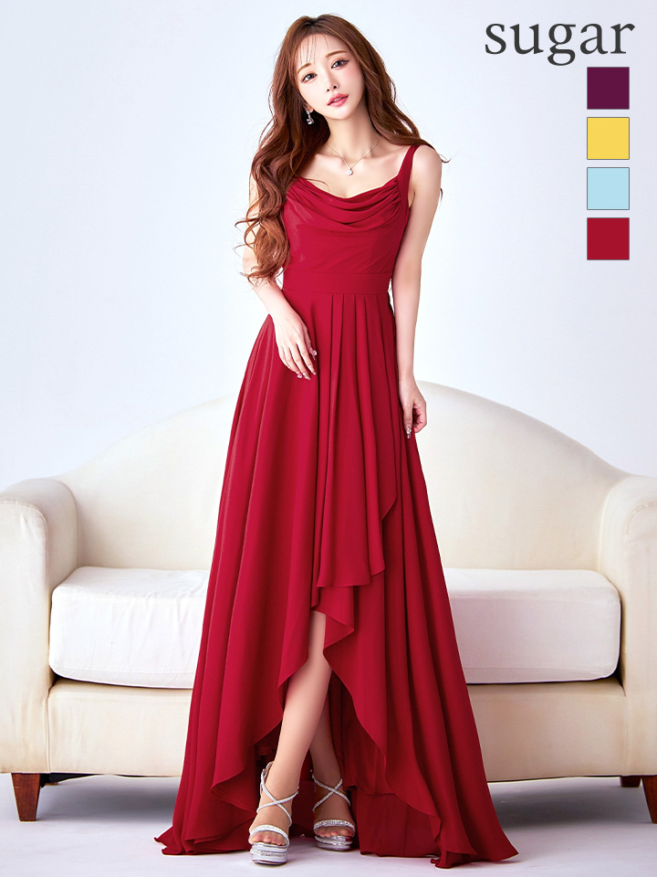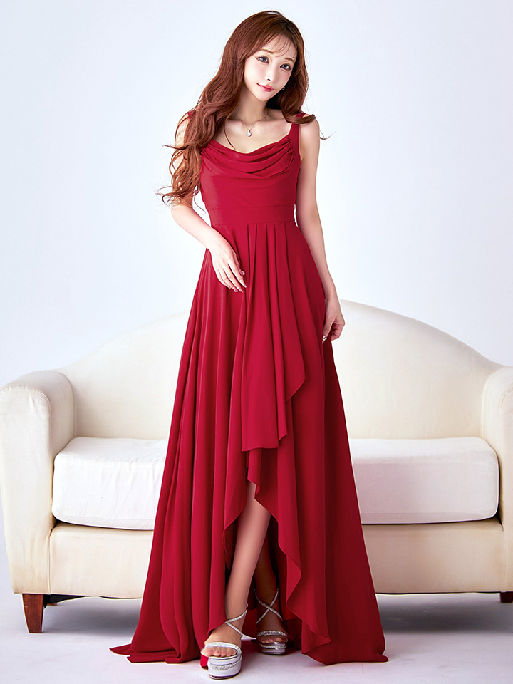 Lサイズあり【CLEO CLOE/ クレオ クロエ】 オケージョンドレス/ パーティードレス/ ステージドレス/ イベントドレス/ バストドレープ/ ノースリーブ/ 変形ヘムライン/ フレア/ ロングドレス long[OF05] [L60229L-DKR-S2510]