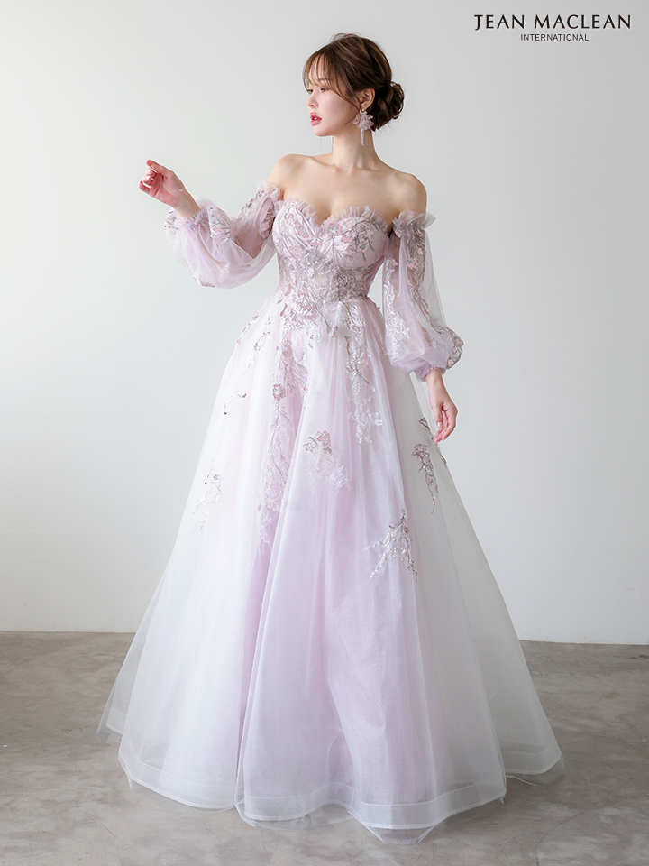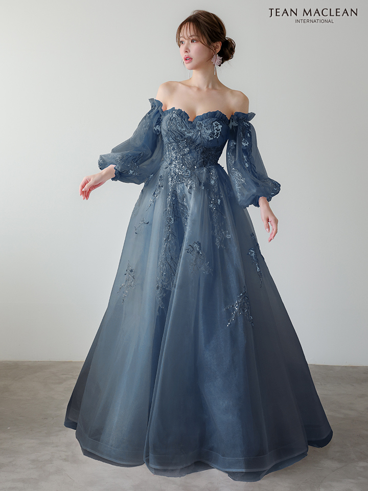 【JEAN MACLEAN/ジャンマクレーン】 2way/ 長袖/ パフスリーブ/ ベア/ シアー/ レース/ フラワー刺繍/ フレア/ プリンセス/ ロングドレス/ キャバドレス long[OF2A] [51955-JM-P-2510]