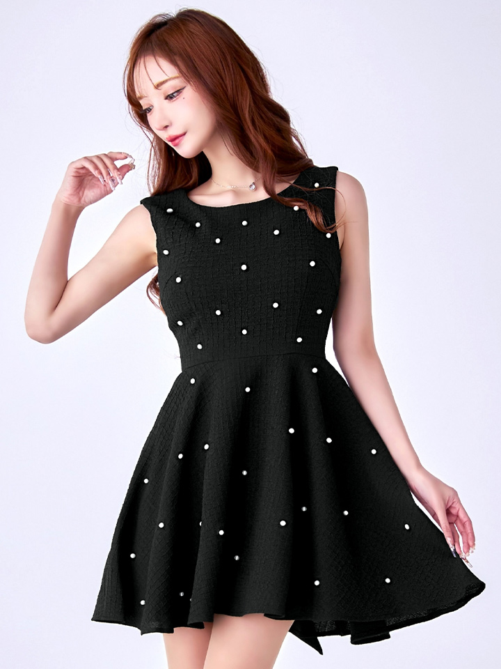 XSサイズあり【Donia Quinn / ドニアクイーン】 パール/ ノースリーブ/ バックリボン/ ハイウエスト/ フレア/ ワンピース/ ミニドレス/ キャバドレス[OF05] [Q60227Y-B-S2510]